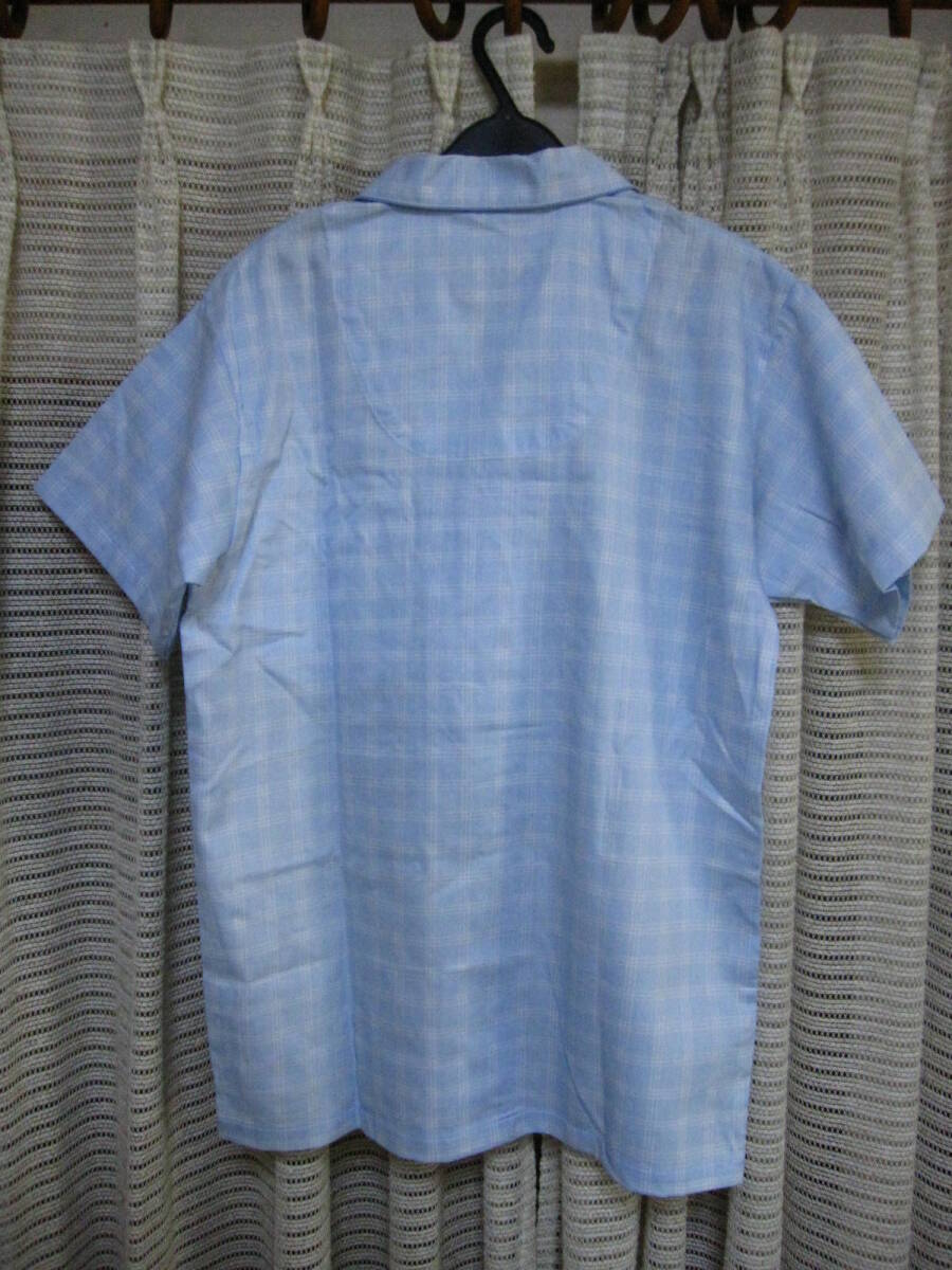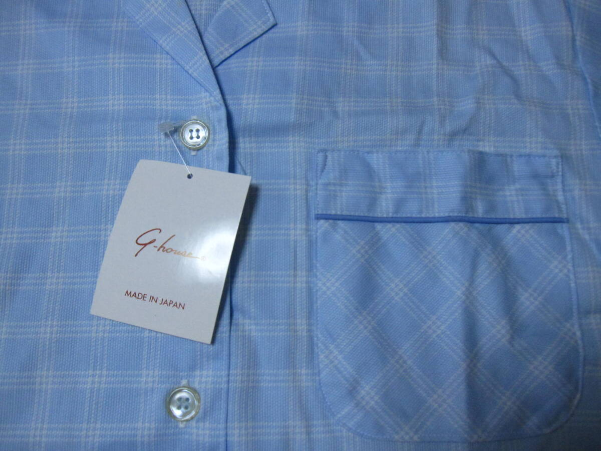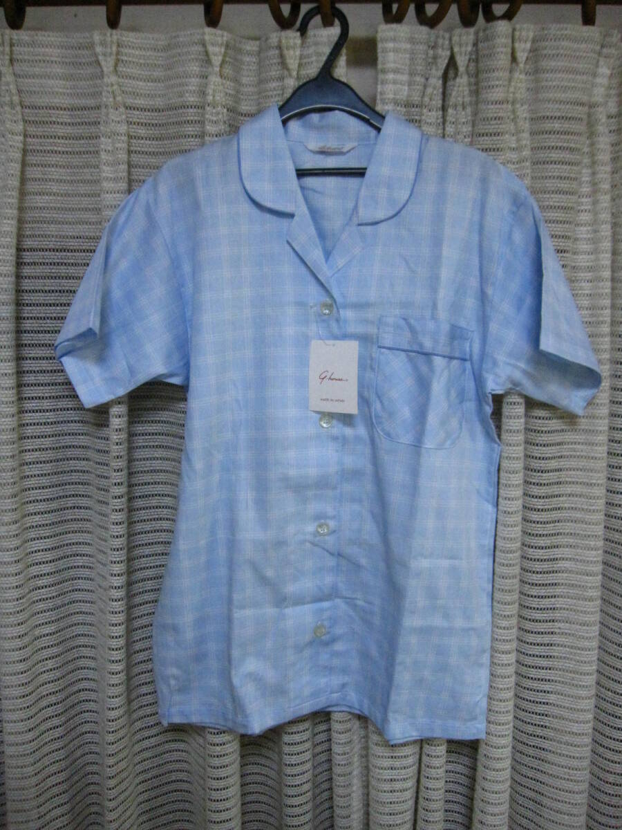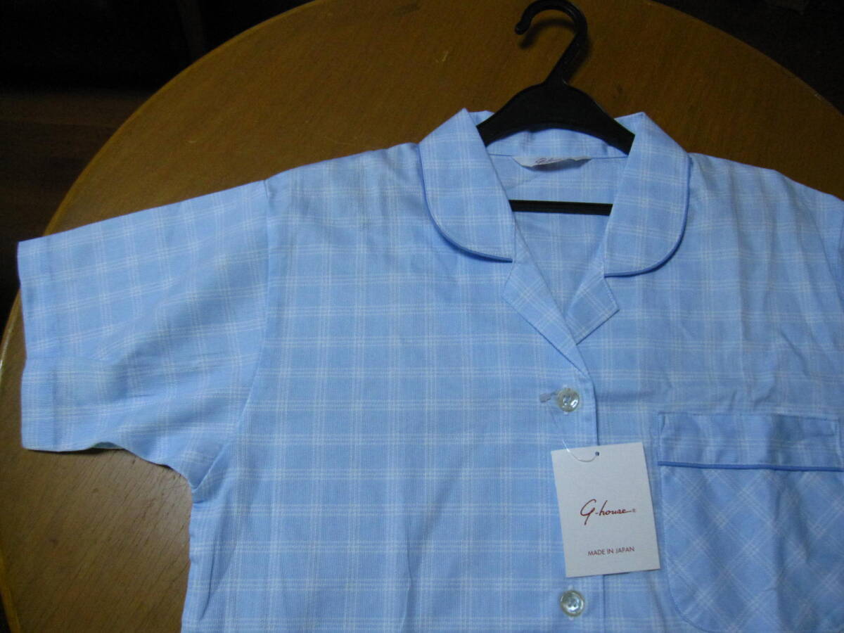 女性 パジャマ 新品 S 水色 チェック 日本製 春 夏 秋 格安 G.H 兼用 半袖 長丈 婦人 レディース 可愛い お洒落 綿100% 寝間着 サックス