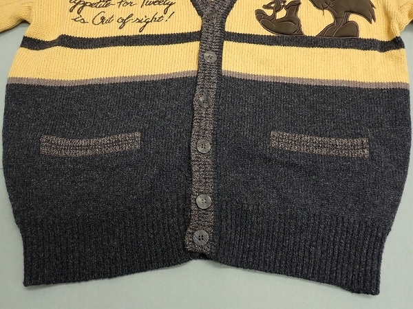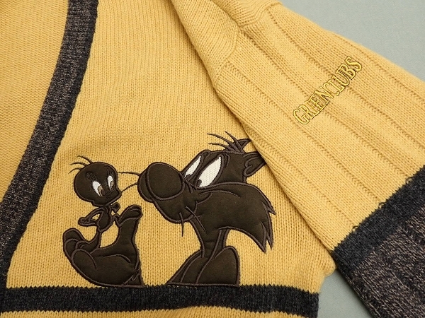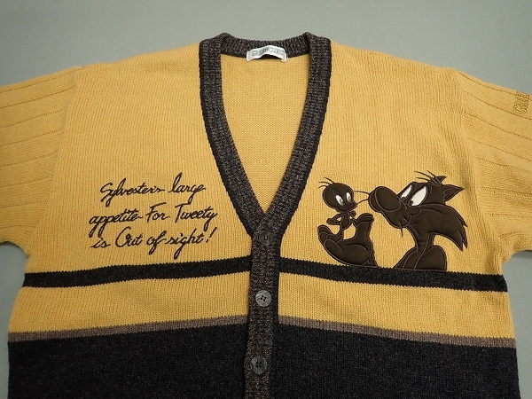 | GREEN CLUBS グリーンクラブのニットカーディガンです。ルーニー・テューンズのアップリケがとてもかわいいデザインですね。素敵にお使い頂けると思います。気になる方は是非ご検討下さい。 | |
