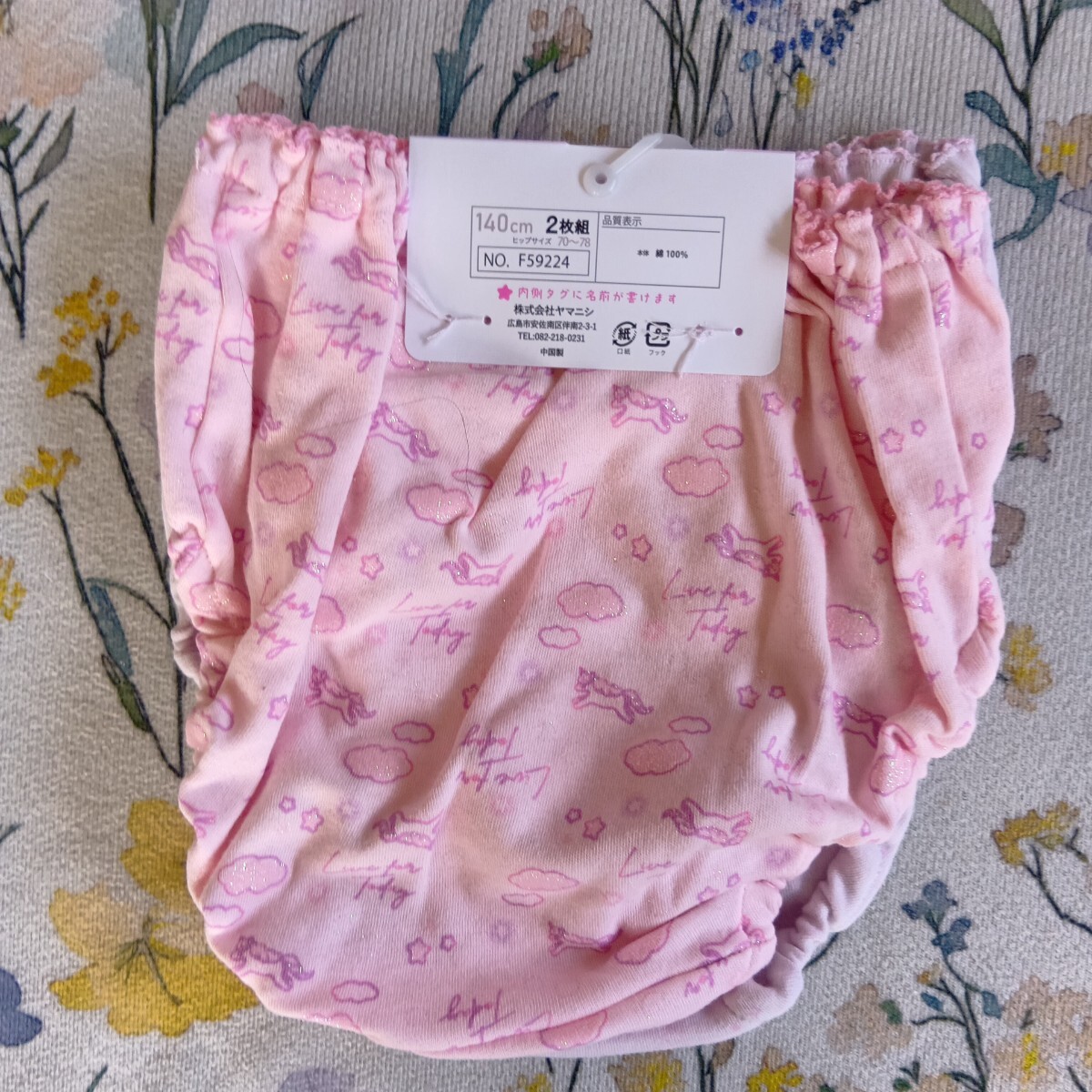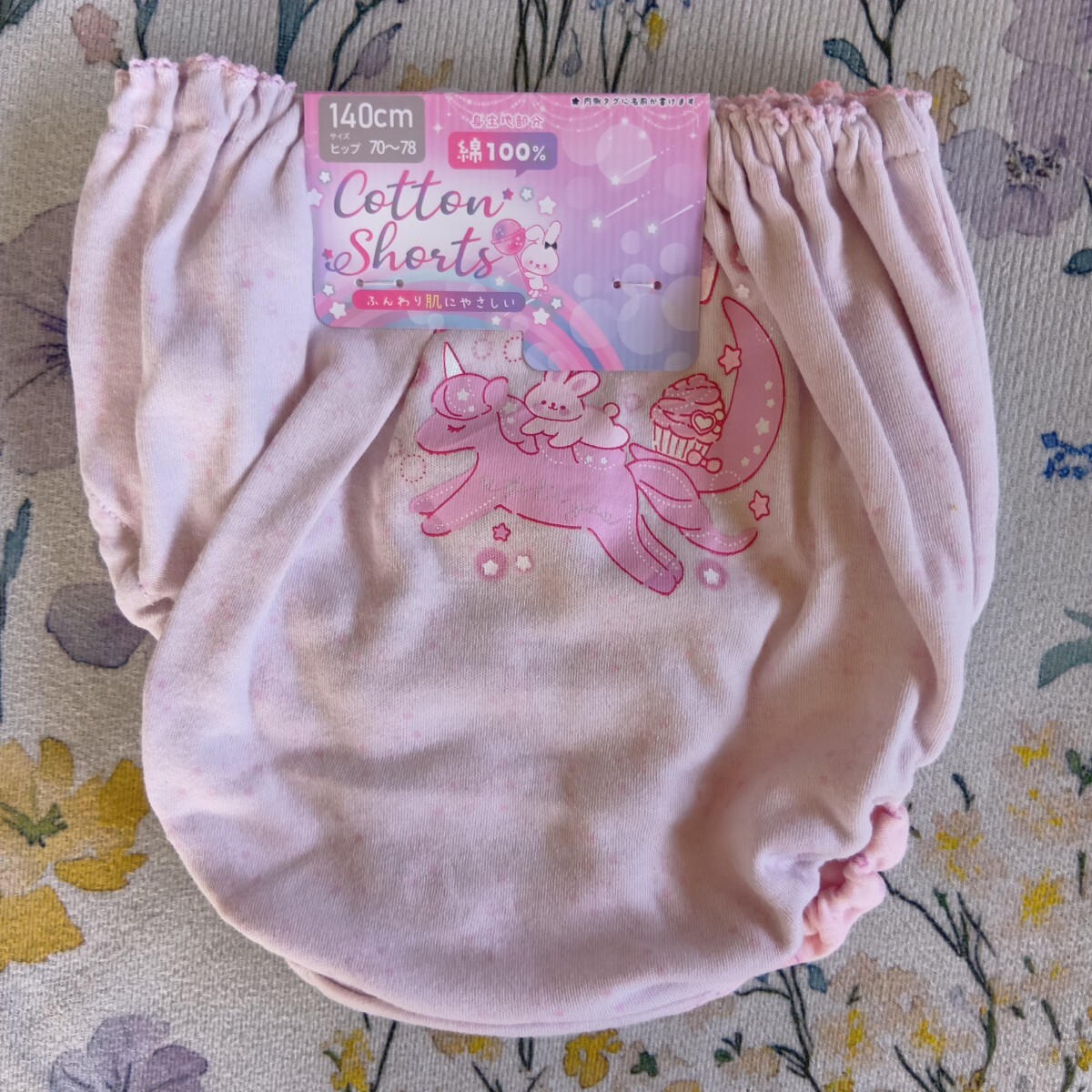 女児 ガールズインナー 薄紫系地?にユニコーン・うさぎ・星&ピンク地にユニコーン・雲・英字模様のショーツ 2枚組 140サイズ