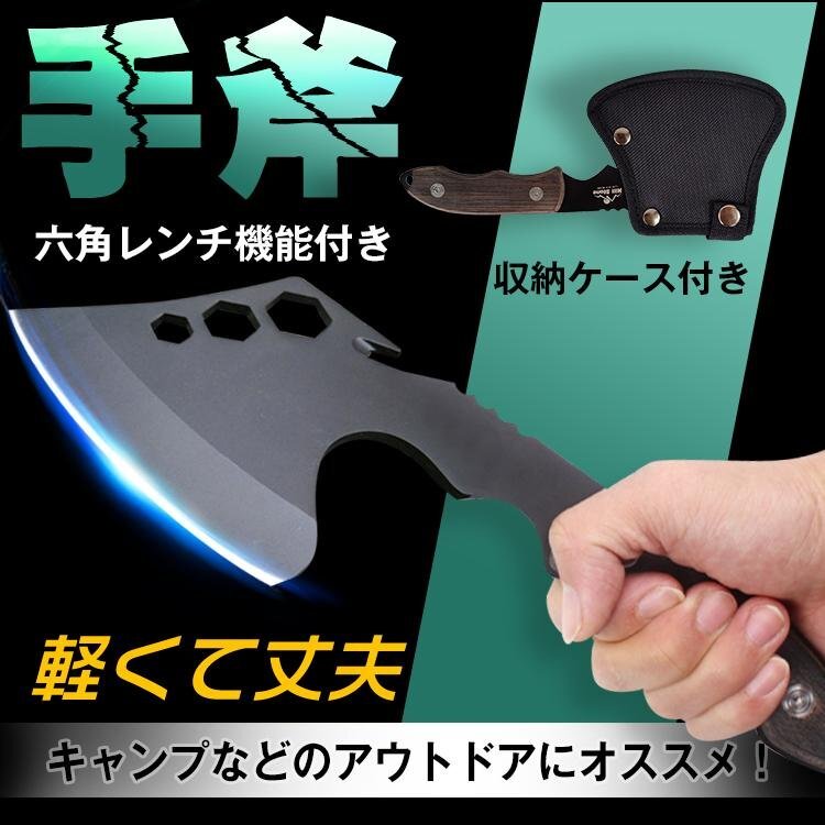 送料無料 手斧 斧 マサカリ 薪割り コンパクト ミニ 持ち運び 収納ケース 六角レンチ バーベキュー 焚き火 落ち木 アウトドア 農具 ad244