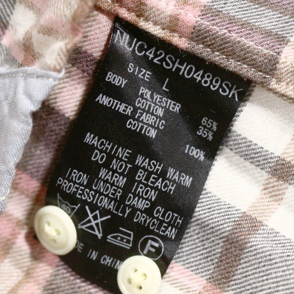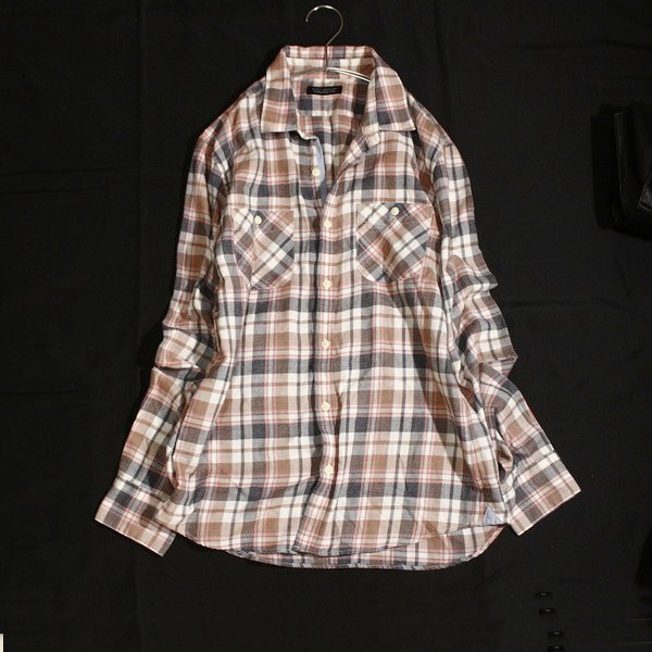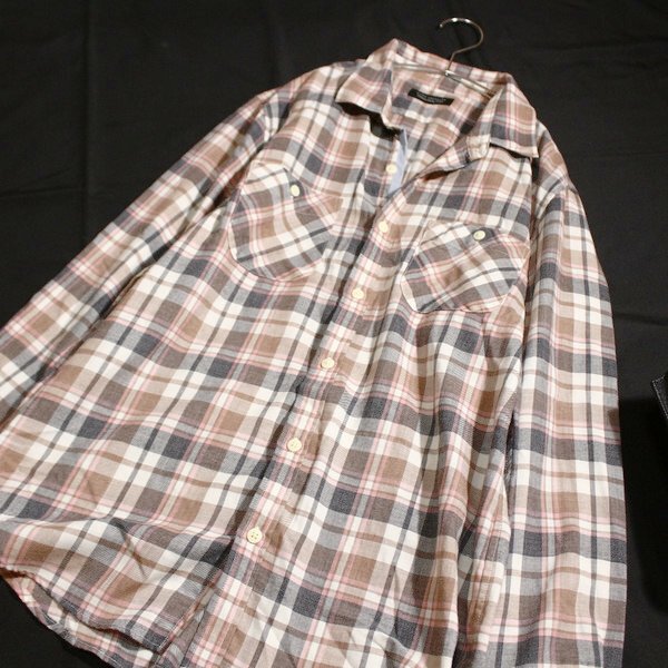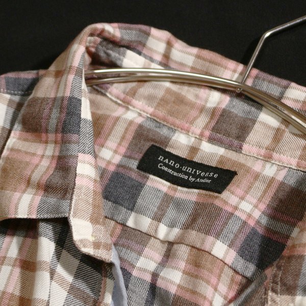 美品 nano universe ナノユニバース コットンブレンド チェック柄 長袖シャツ L 25B09