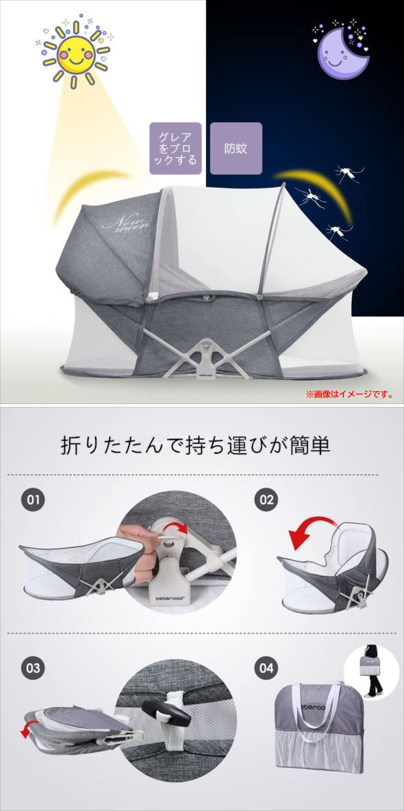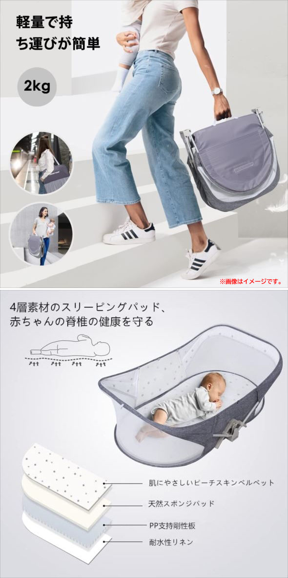 【商品特長】 ◆工具は不要で、たった1秒で簡単に折りたたんだり広げたりでき、女性一人でも簡単に組み立てることができます。 ユニークなモスキートネットと日よけのデザインは、取り付けや取り外しが簡単で、光を遮断し、 蚊を防ぎ、旅行や屋外での使用に非常に適しています。 ◆折畳時のサイズは50×51.5×12cm、重量はわずか2.3kgと、持ち運びや収納にとても便利です。 ◆丈夫で耐久性のあるメタルフレームを採用し、転倒防止にも安定・安全です。 快適な独立したスポンジスリーピングパッドの下にPPハードボードがあり、赤ちゃんに快適な睡眠環境を提供し、 赤ちゃんの背骨をケアします。 | |||||||||||||||