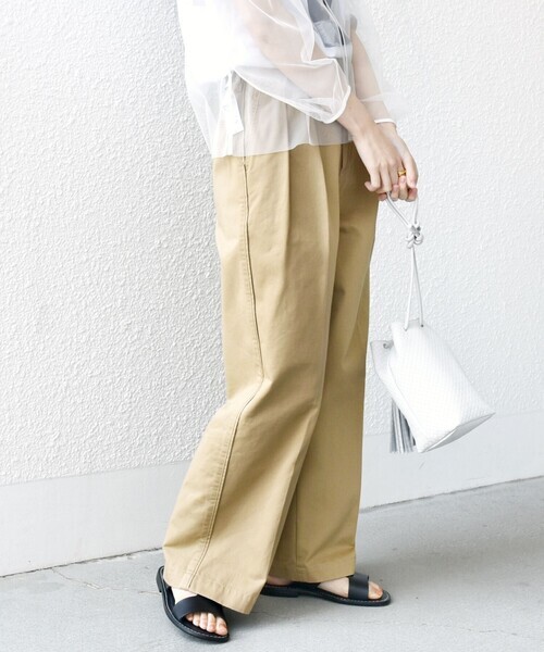 キーワード:チノパン レディース ストレート センタープレス フルレングス レギュラー ワイドパンツ 無地