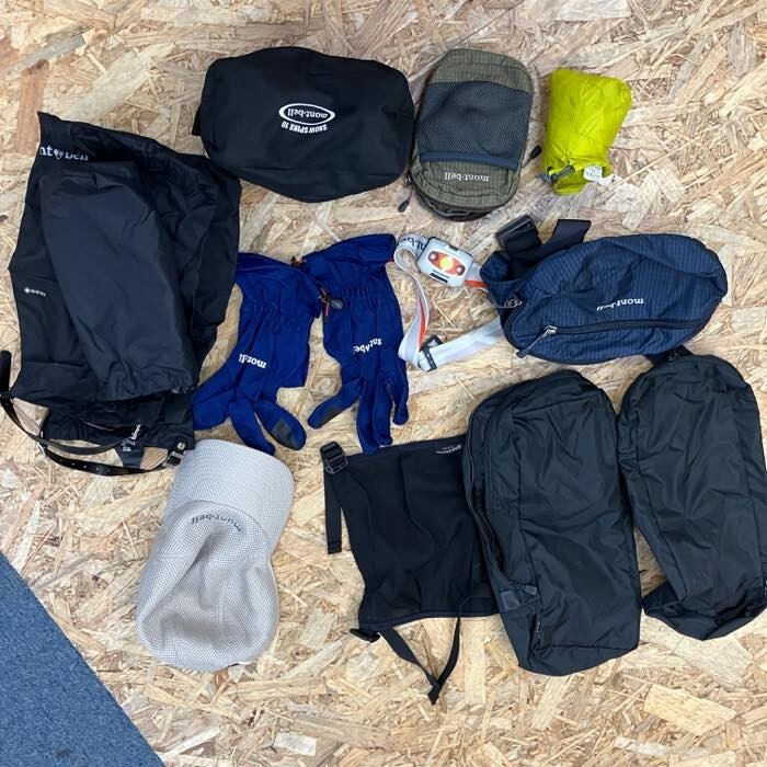 【アウトドア用品 セット】1円~!!◆mont-bell モンベル ポーチ 帽子 スノースパイク 軽 アイゼン 等 キャンプ アウトドア 登山 mc01078435