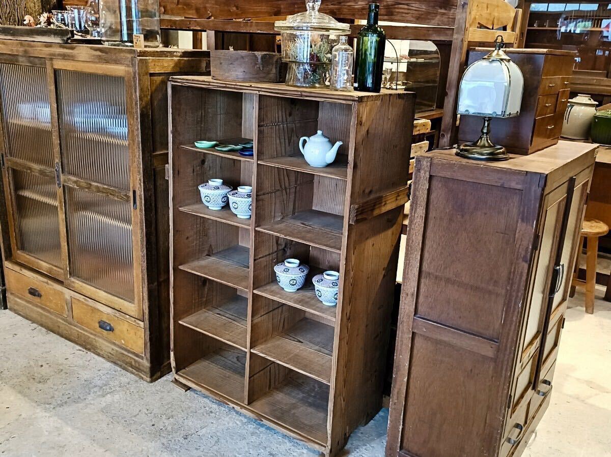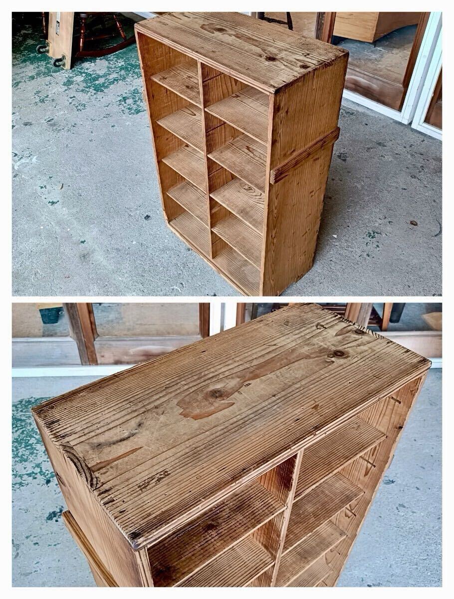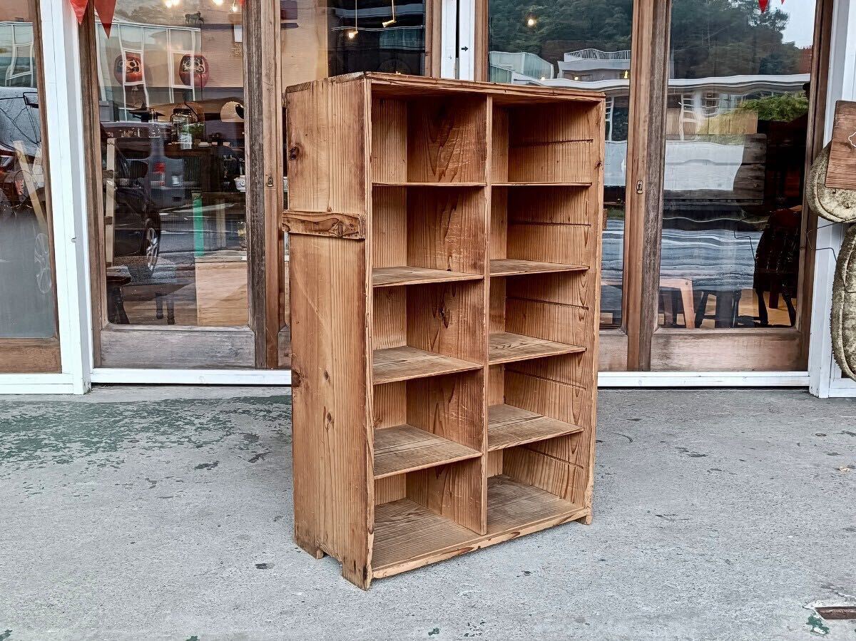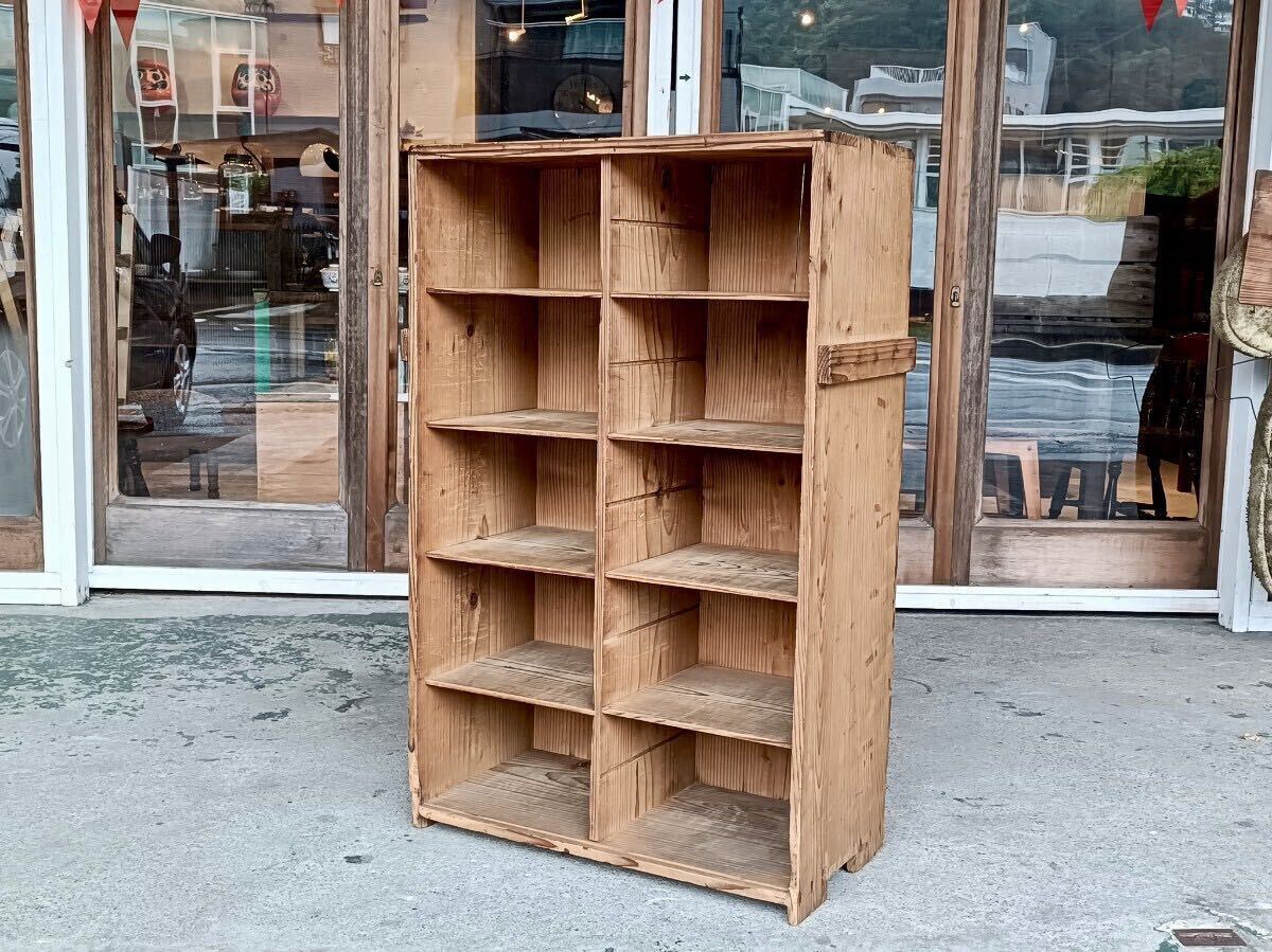 k014 雰囲気の良い升目棚/キャビネット/飾り棚/収納棚/靴箱/食器棚/アンティーク/ヴィンテージ/古道具/古家具/店舗什器