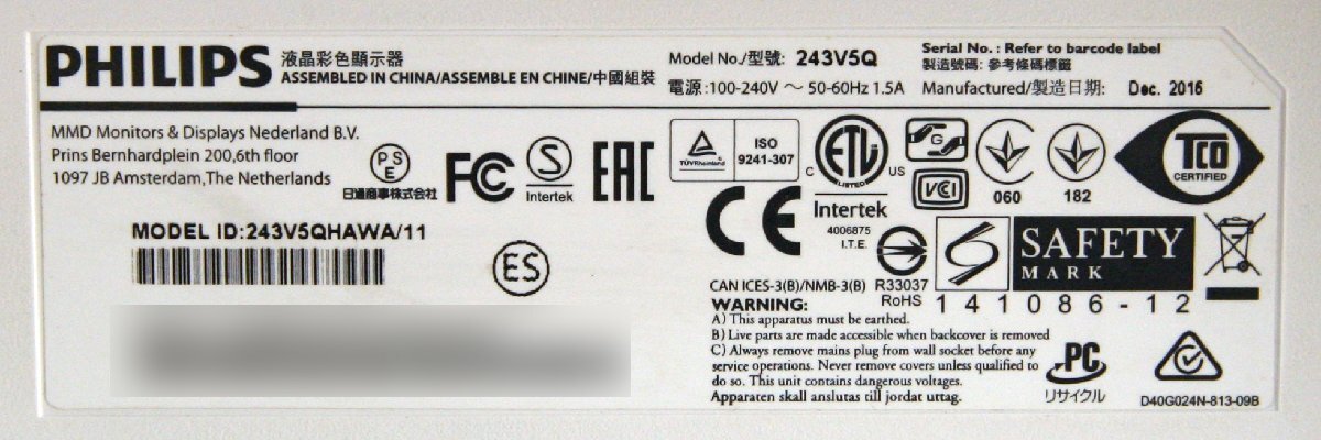 | 商品名 | 243V5QHAWA/11 |