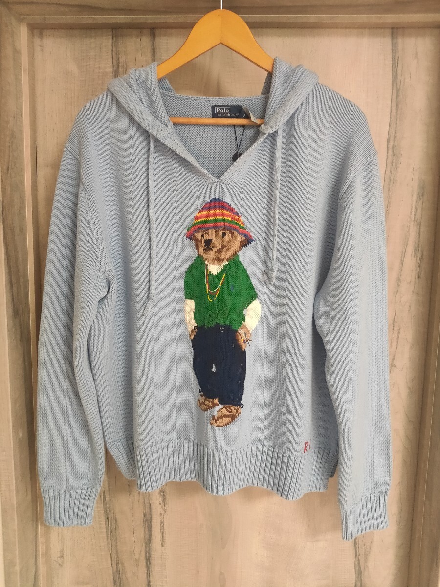 ラルフローレンのポロベアーのコットンニットです。素材は100%コットン、珍しいパーカータイプです。レディース品です。