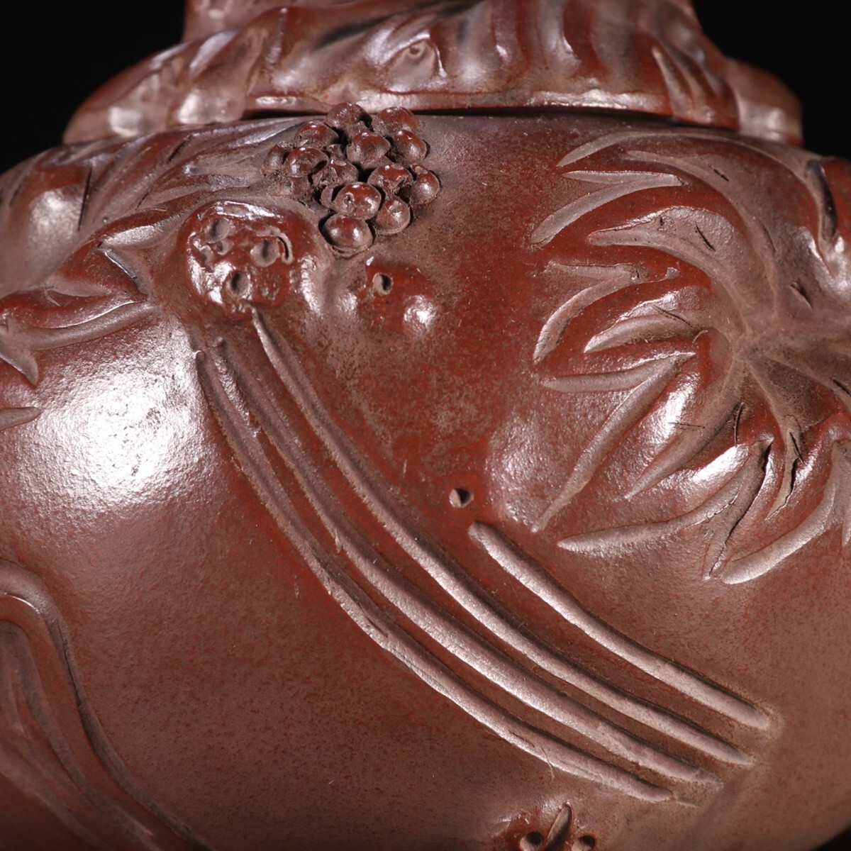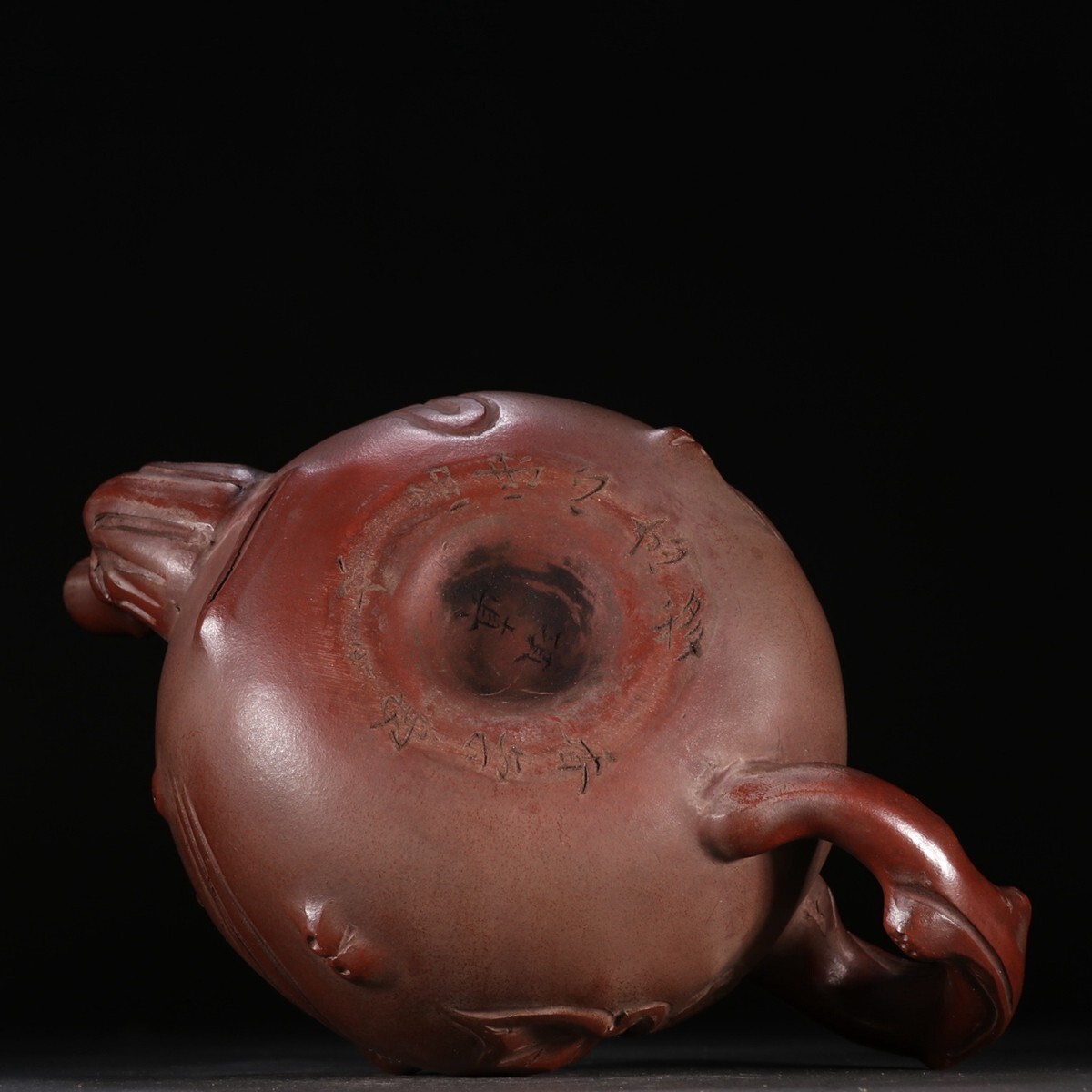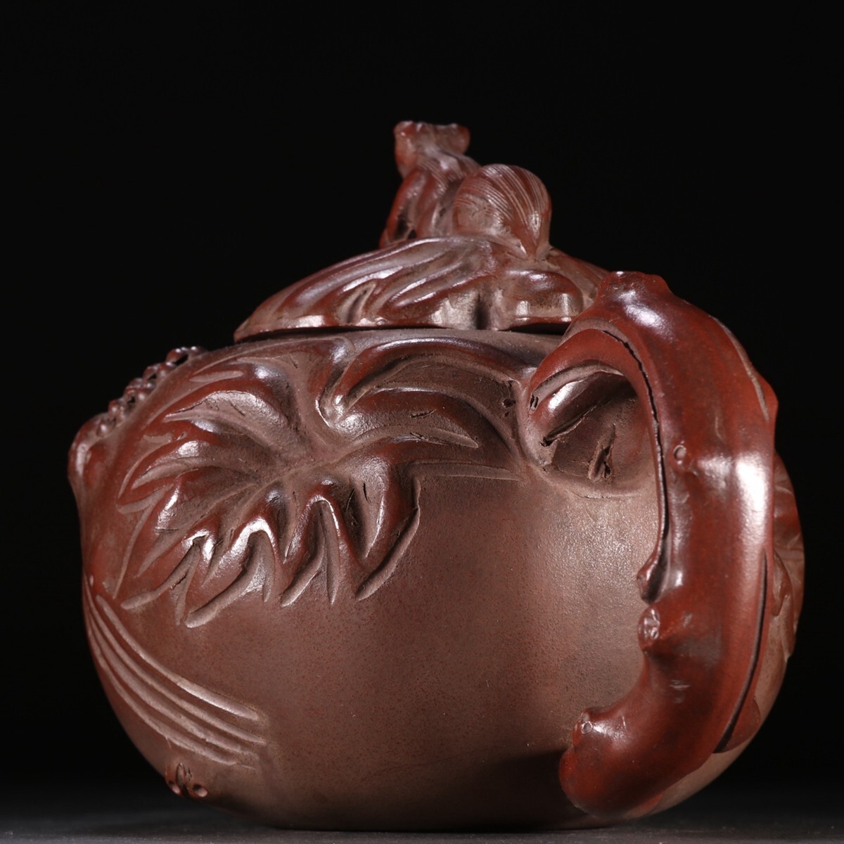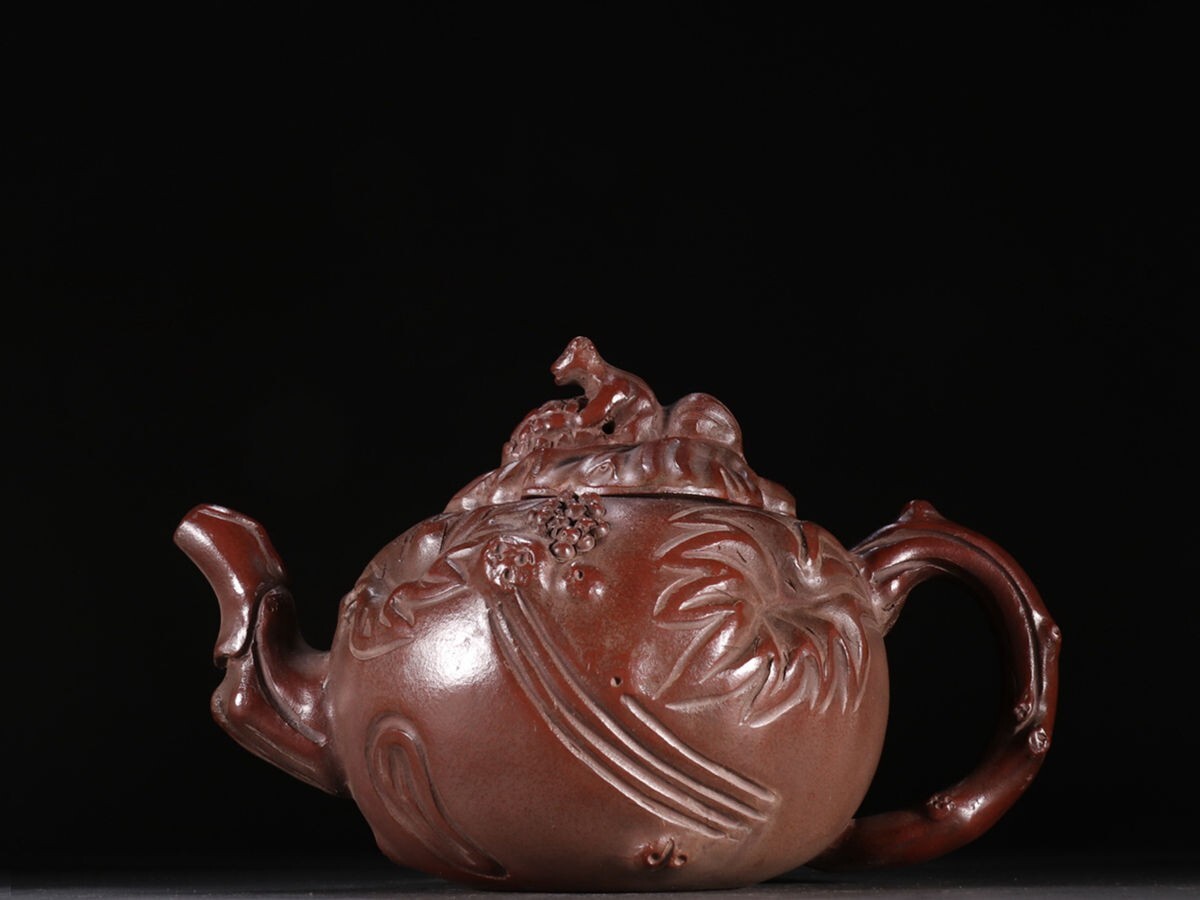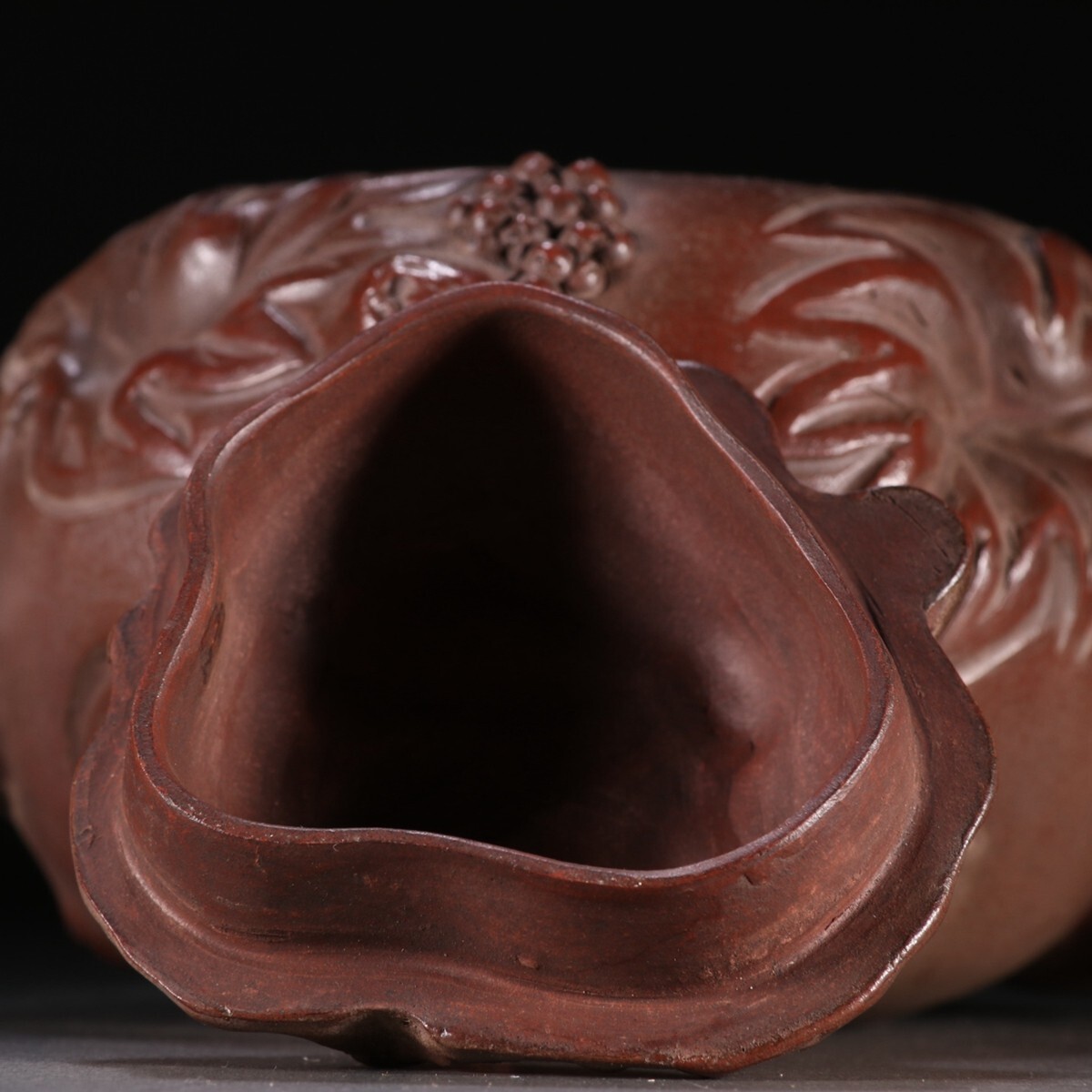 【瓏】紫砂彫 松鼠葡萄茶壺 項真銘 明時代 中国陶磁器 陶芸 後手急須 茶壷 茶道具 置物 古美術 蔵出