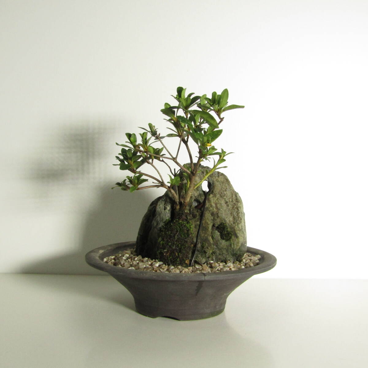 景色の良い石に添わせ優し気な自然樹形に仕立てられており、このままでも趣のある姿を楽しむことのできる一品ですが、これからさらに枝葉を増やし整え持ち込んでいくことでより一層美しい盆栽としてお楽しみいただけます。