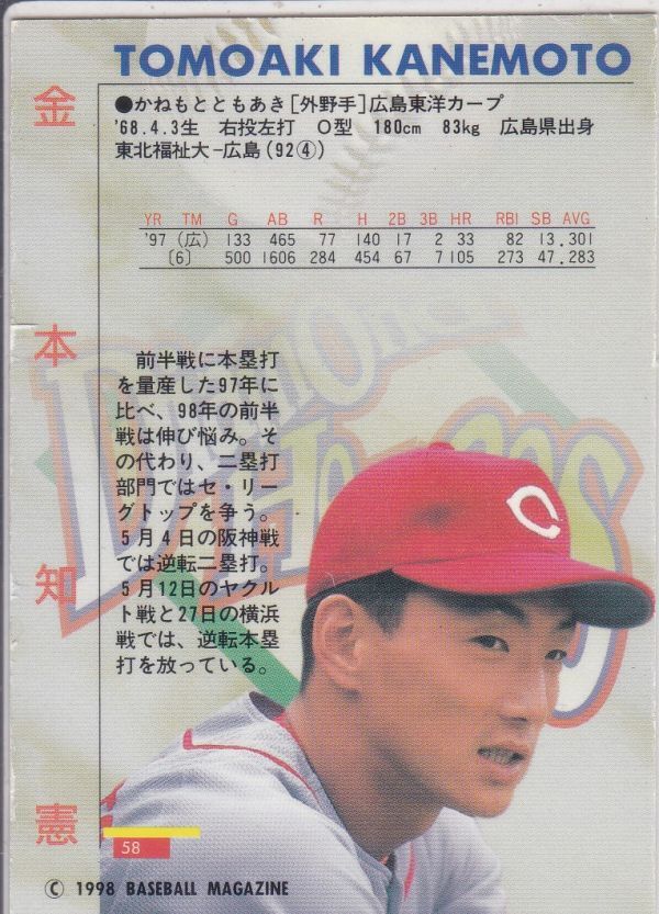 ●1998BBM/DH 【金本 知憲】 BASEBALL CARD No.58:広島