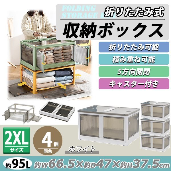 | 商品名 | 送料無料 収納ボックス 折りたたみ 4個セット 約66.5×47×37.5cm 2XLサイズ 95L キャスター付き 5面開閉 観音開き 積み重ね スタッキング クリア 透明 プラスチック コンテナ 衣装ケース 折畳み おしゃれ 収納 小物 おもちゃ 衣類 布団 押し入れ stbox882xl4p |