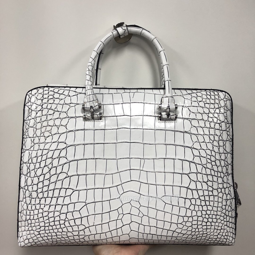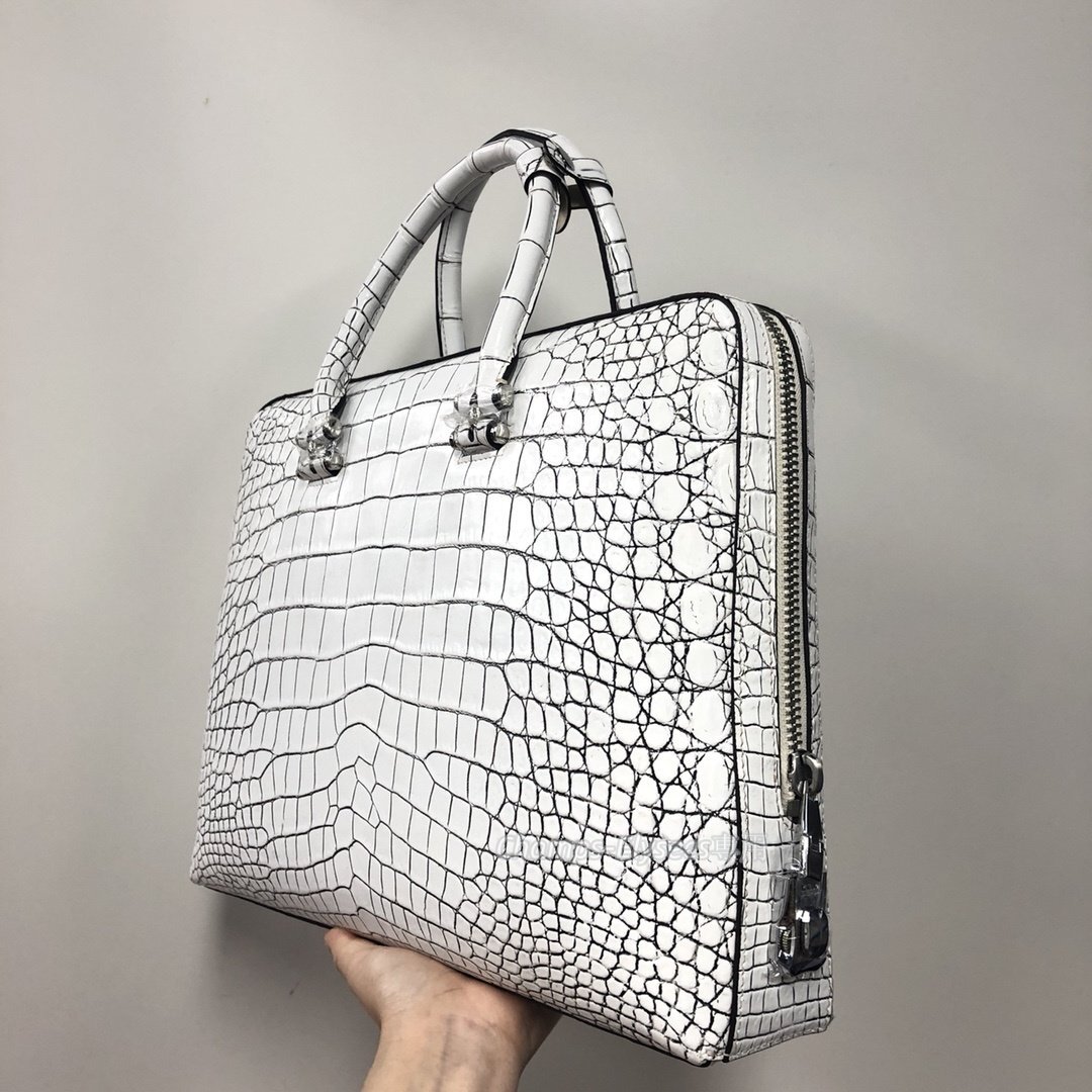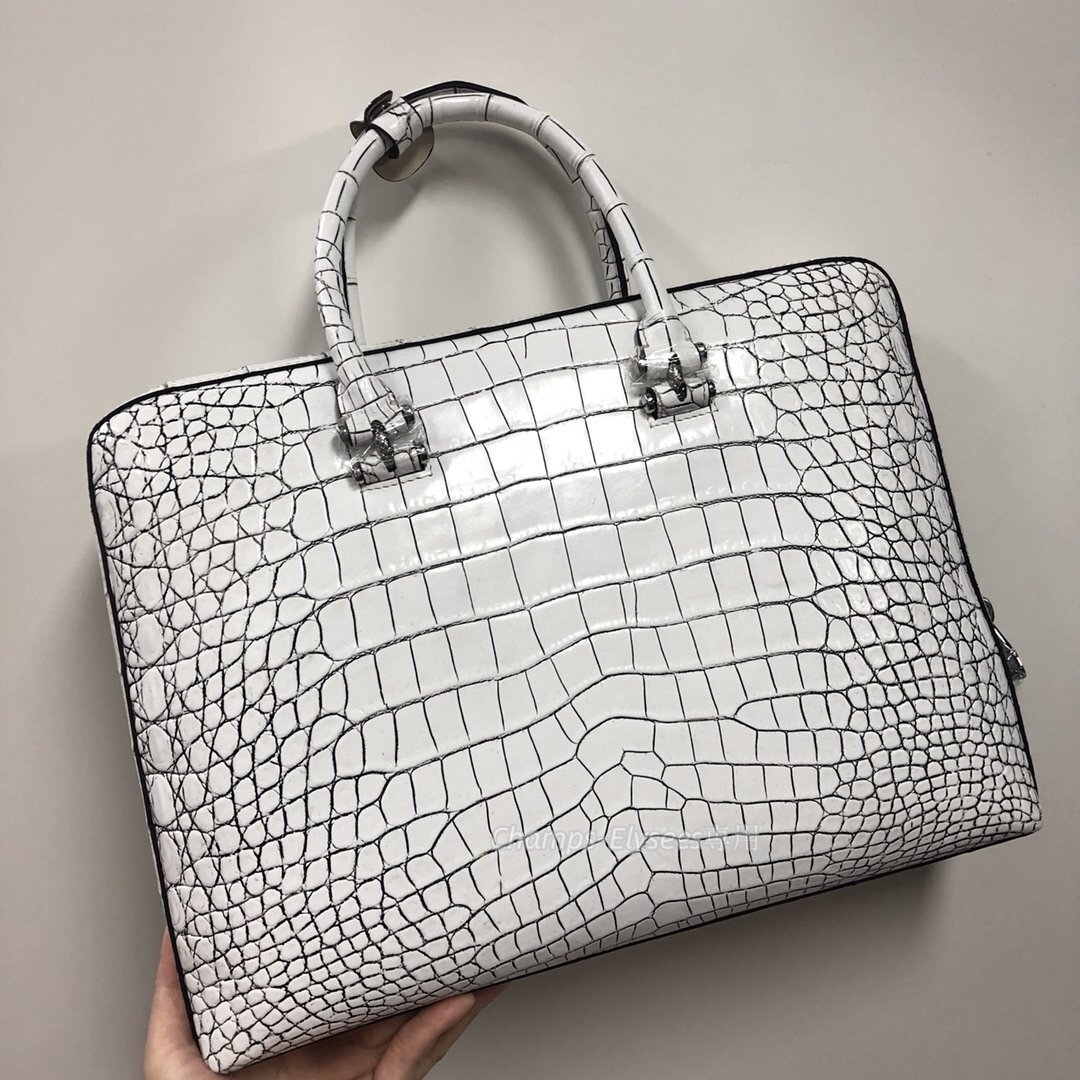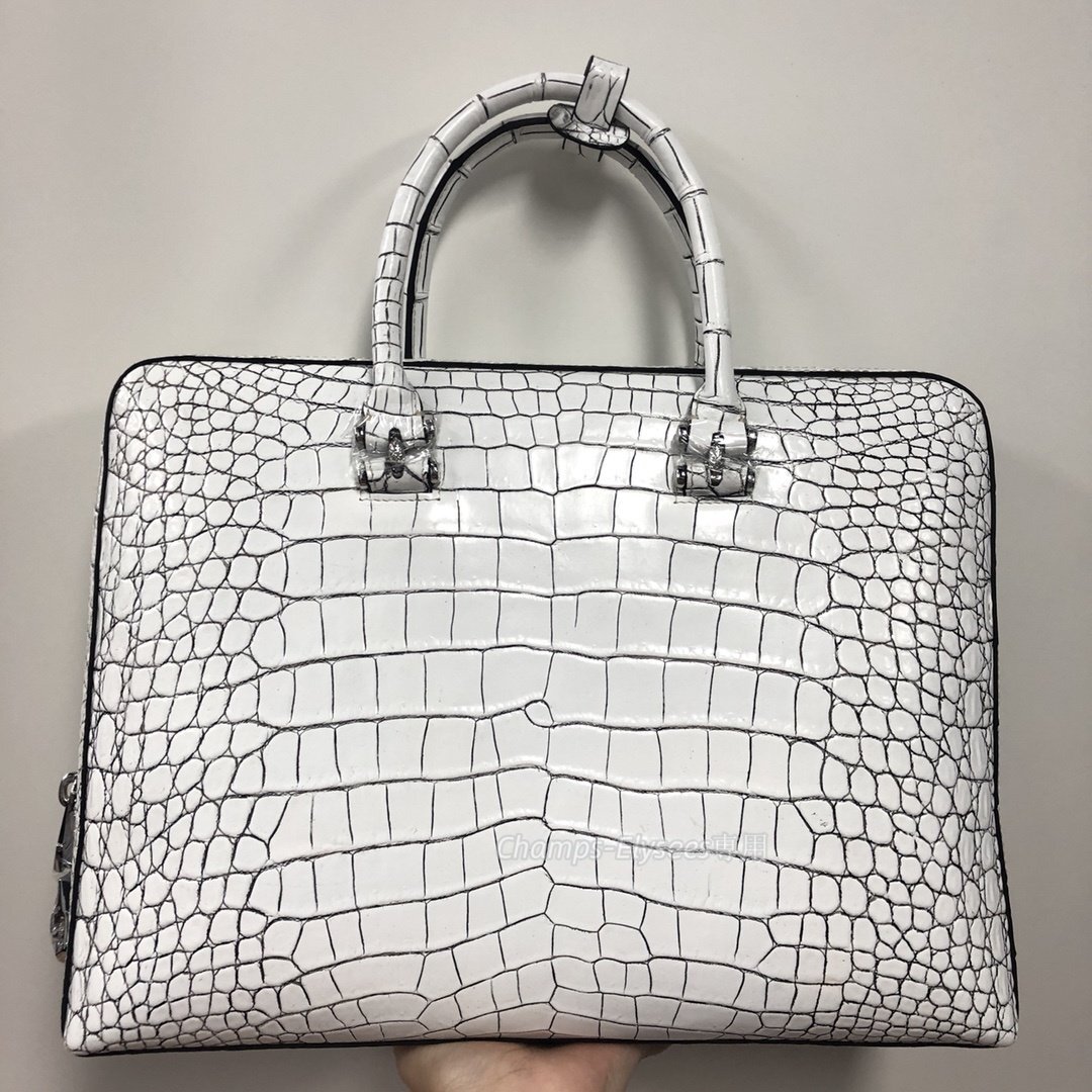上品なビジネスバッグ 紳士バッグ 本物鰐革 クロコダイルレザー 高級レザー メンズ書類バッグ ブリーフケース バニラ色
