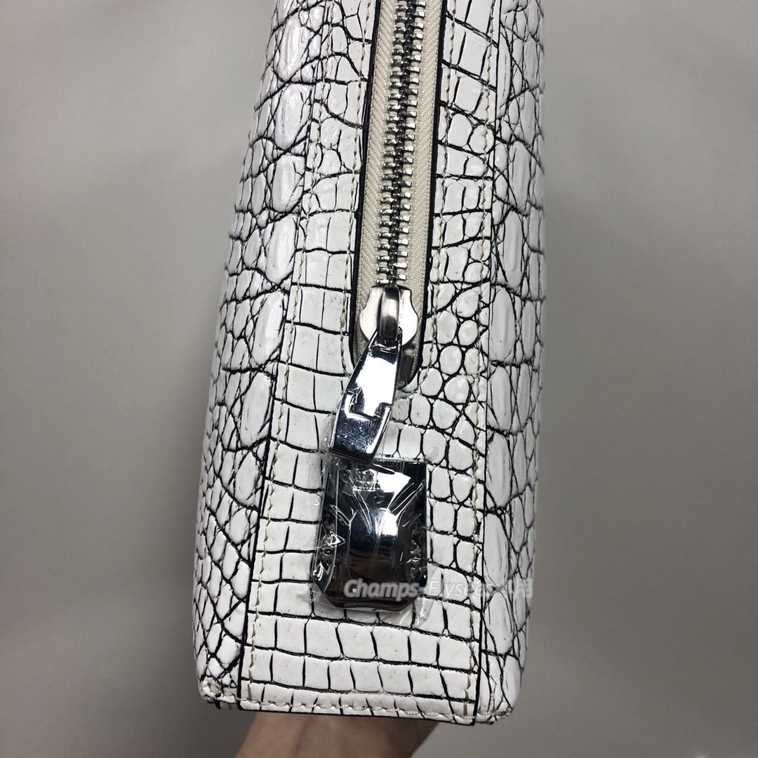 高級感溢れるクロコダイルの革を贅沢にセンター取りで使用しました。