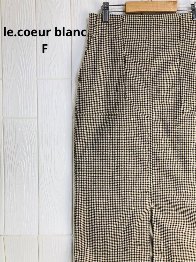 チェック柄のタイトスカート、ウエスト68cm、丈73cm。