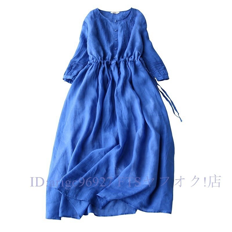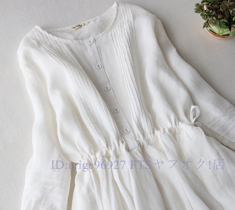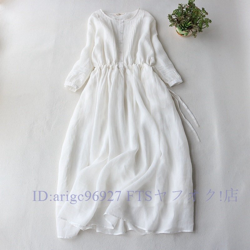 ★新品長袖 レディース おしゃれ 大人お洒落に ロングワンピース 春 夏通勤 無地 綿麻 リネンワンピース 薄手お色選択可ホワイト