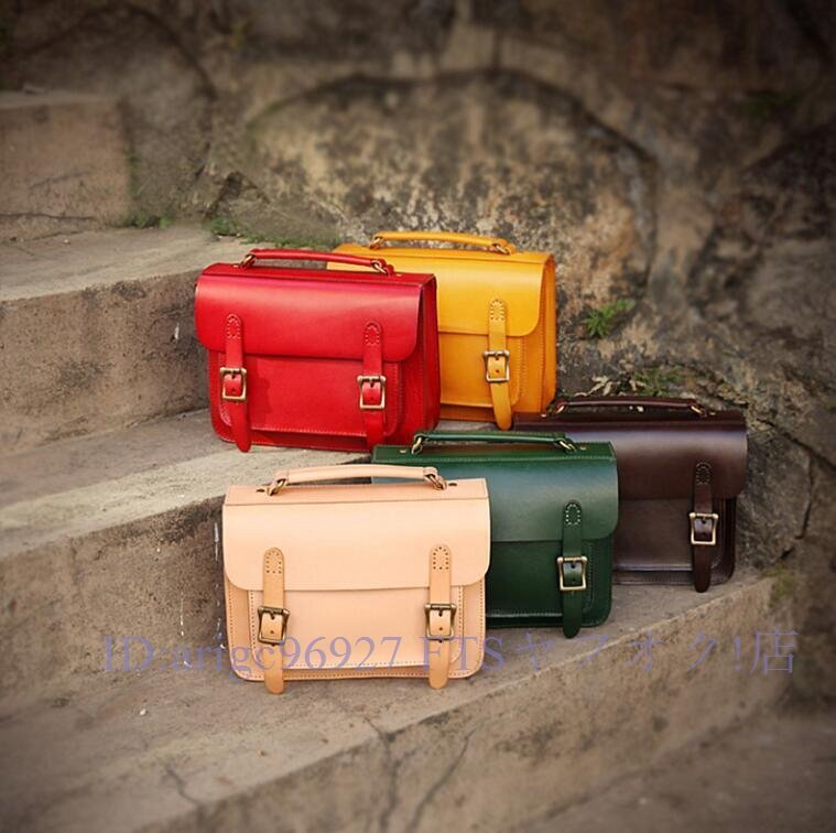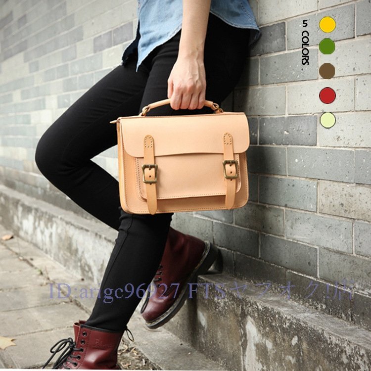 ★新品メンズ バッグ ヌメ革 牛革 レザー ハンドバッグ ショルダーバッグ 斜め掛け ダークグリーン