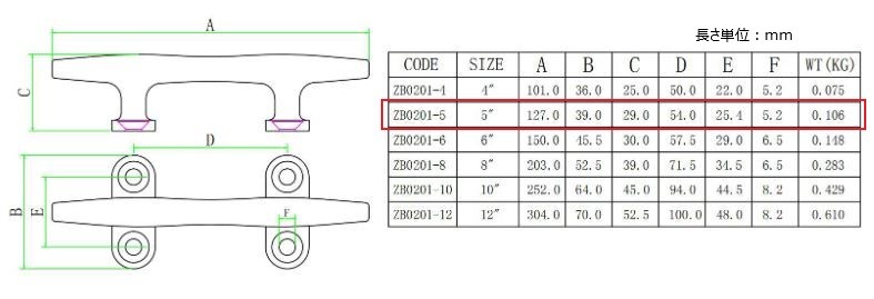 クリート 2本 セット ボート 係留 ステンレス製 5インチ 127mm 2個