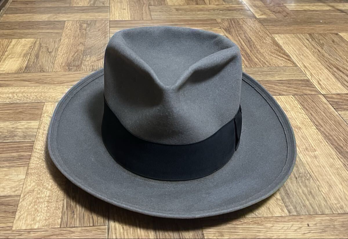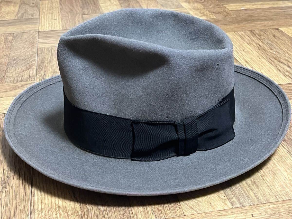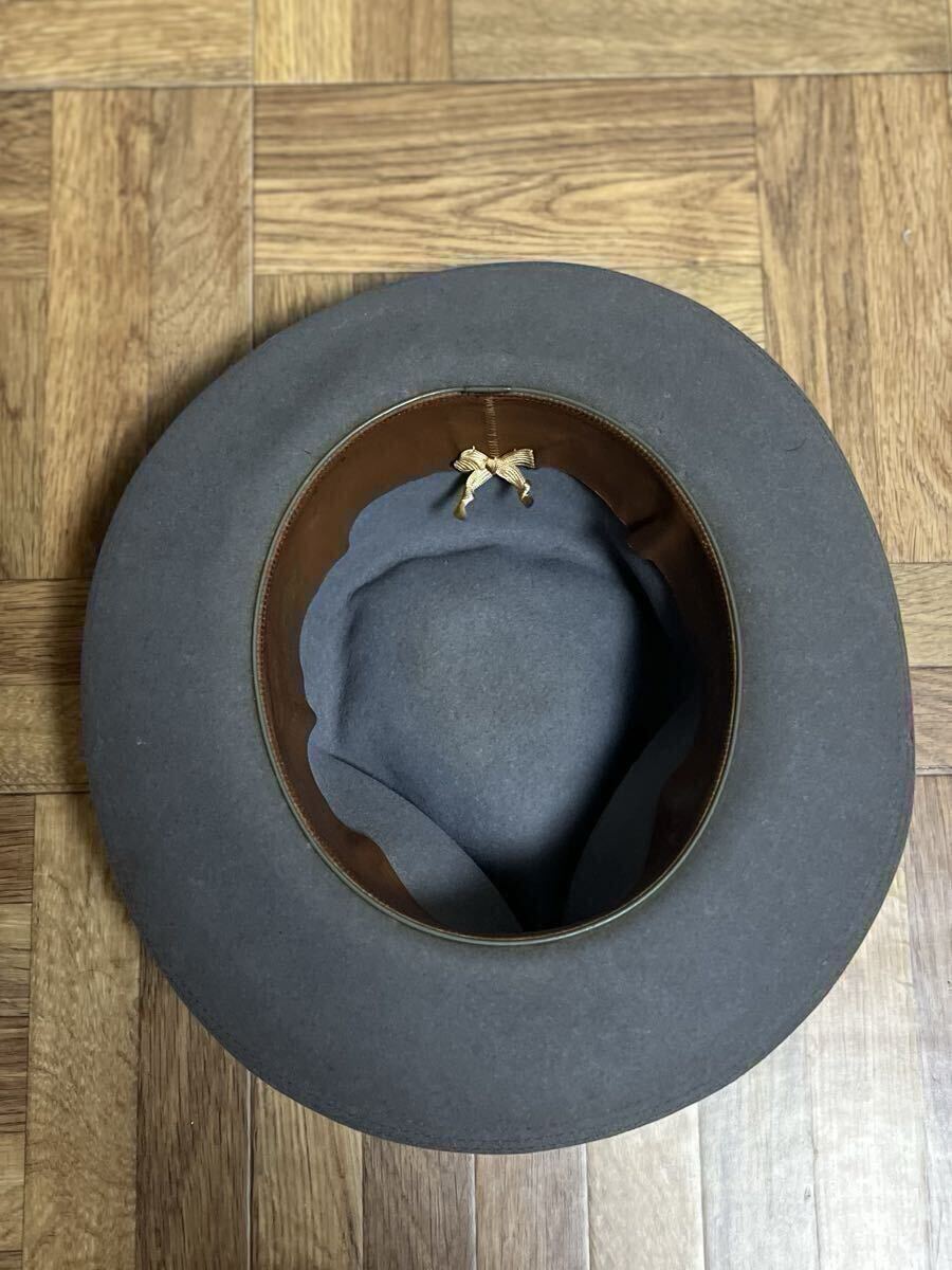 ブランド名 STETSON・表記サイズ ・高さ 12〜10cm・内周 56.5cm・ブリム 6.5cmです。クラウンとブリムに数カ所の傷・ブリムに軽い汚れがあります。型崩れや穴や破れはありません。