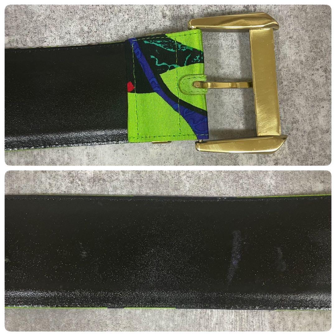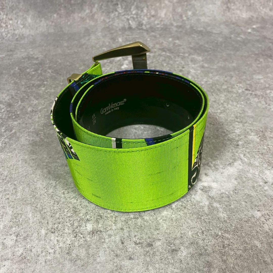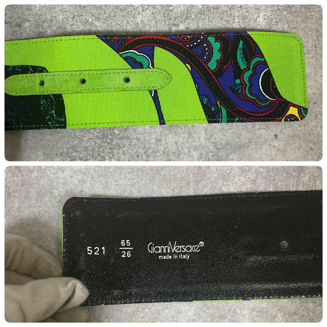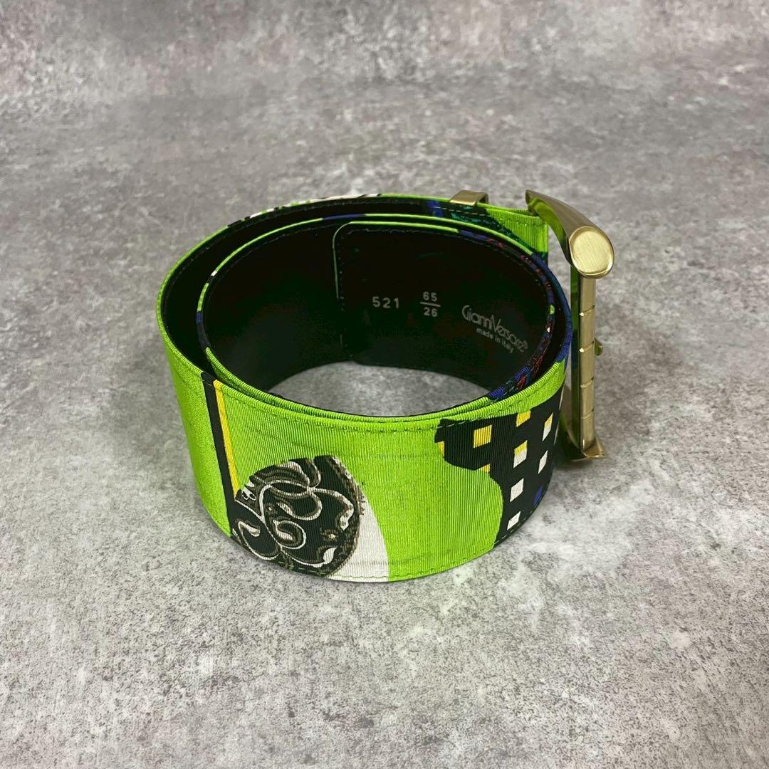 ヴェルサーチ ベルト 金具 総柄 グリーン レザー キャンバス ヴィンテージ