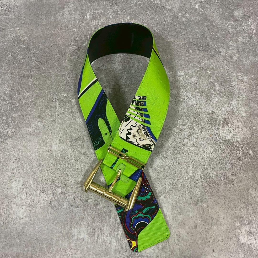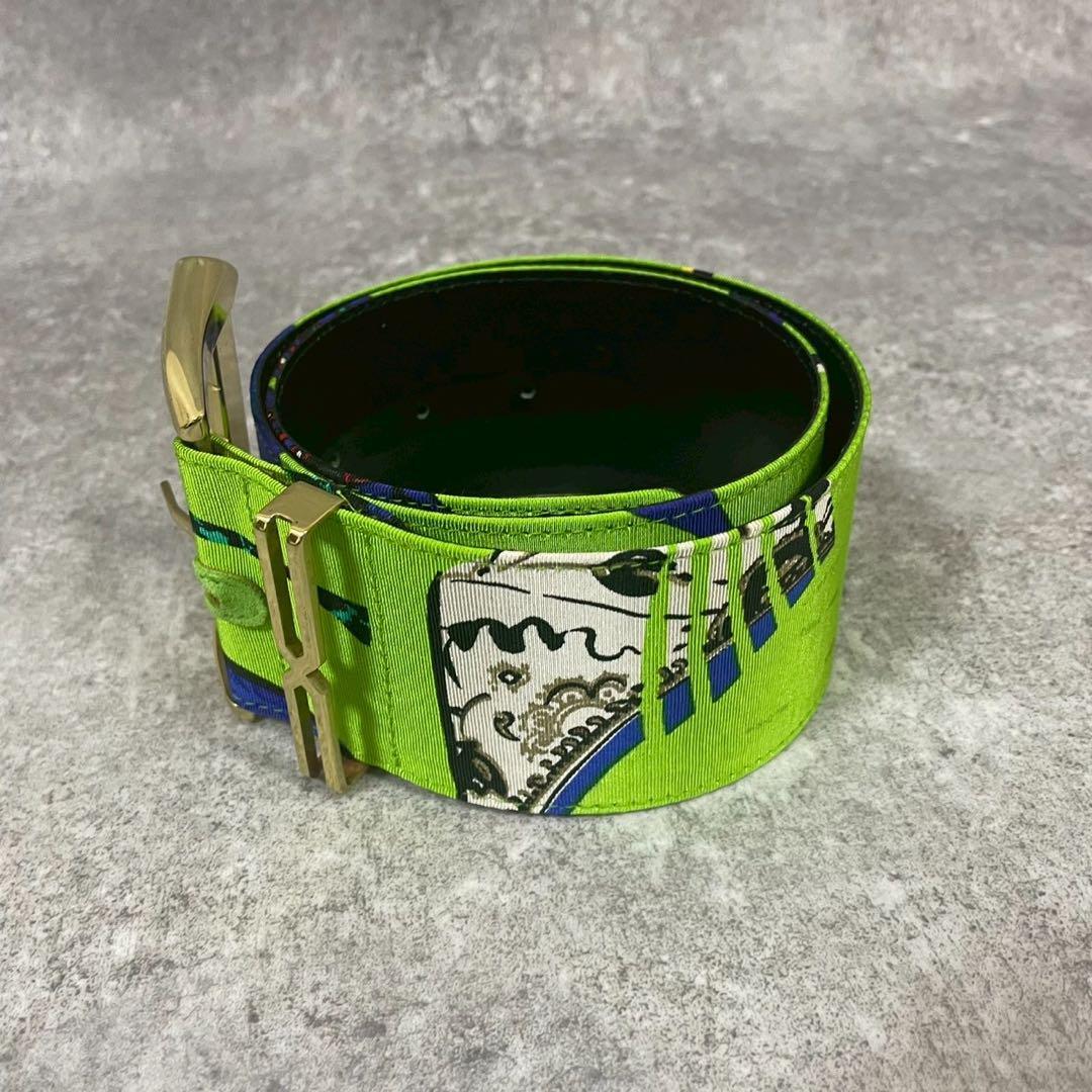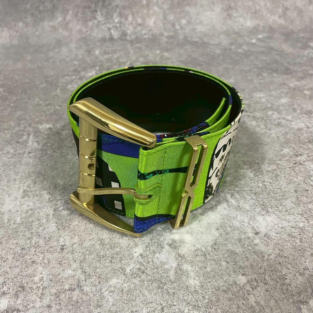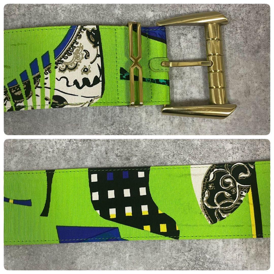 ヴェルサーチ ベルト 金具 総柄 グリーン レザー キャンバス ヴィンテージ