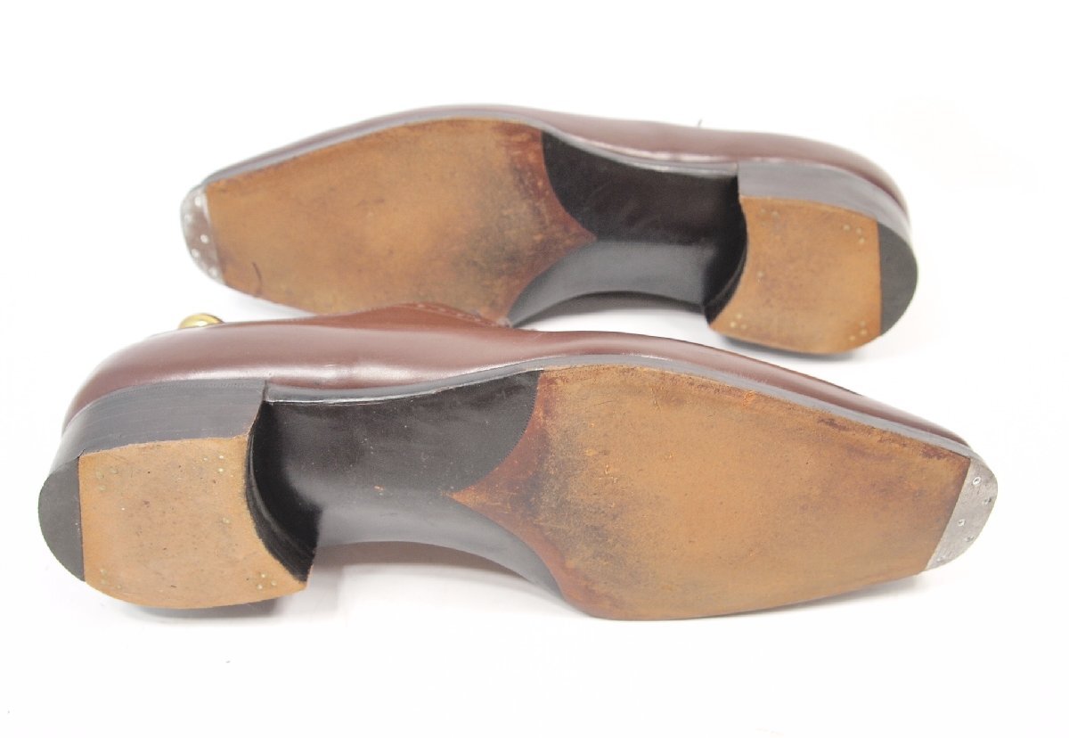 状態はソールで見て、 つま先はビンテージスチールを装備しています。直接的なヘリはほぼないかと思われます。 ヒールの化粧ゴムのヘリが1から2ミリ程度です。インナーの状態も目立つ擦れ傷などなく綺麗 です。
