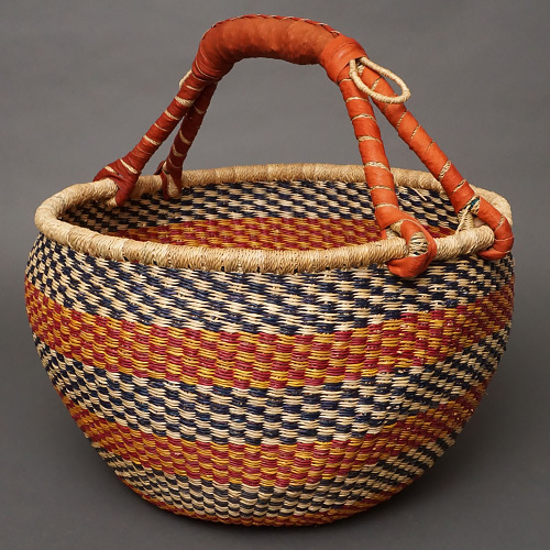 ブルキナファソのエレファントグラスで編まれた半球型のバスケットは、しなやかで丈夫な草を丁寧に編み込んだ伝統的な手仕事の品です。
