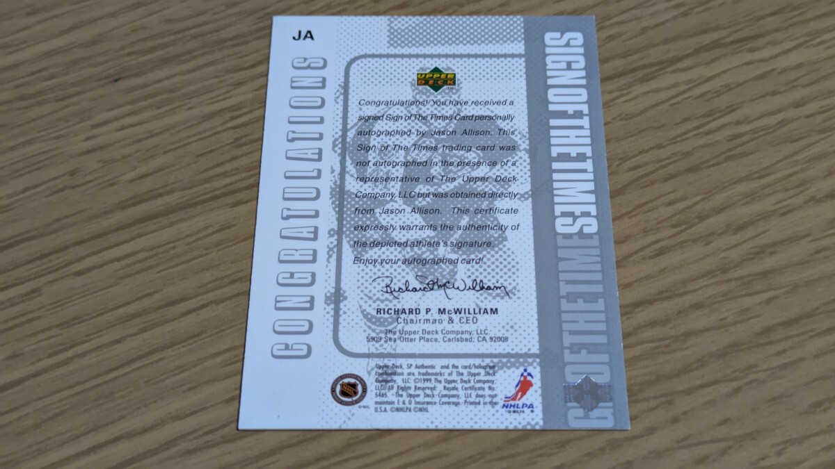 1、Jason Allison直筆サインカード。