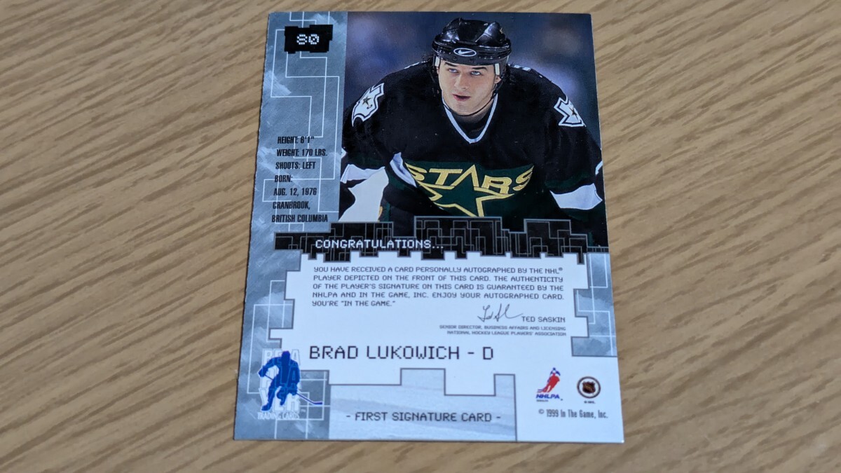 2、Brad Lukowich直筆サインカード。