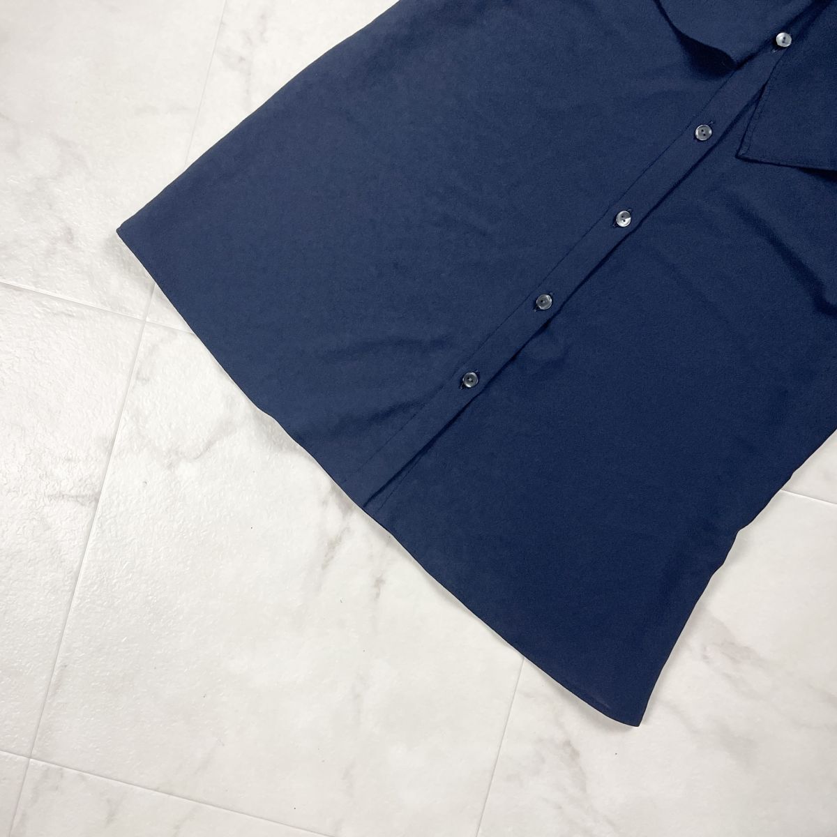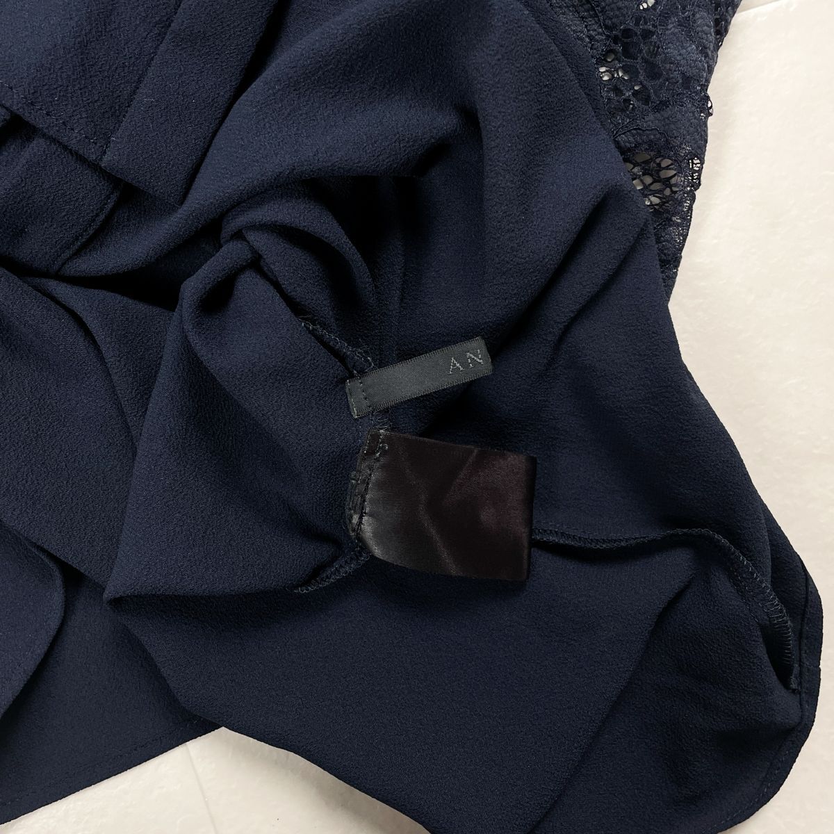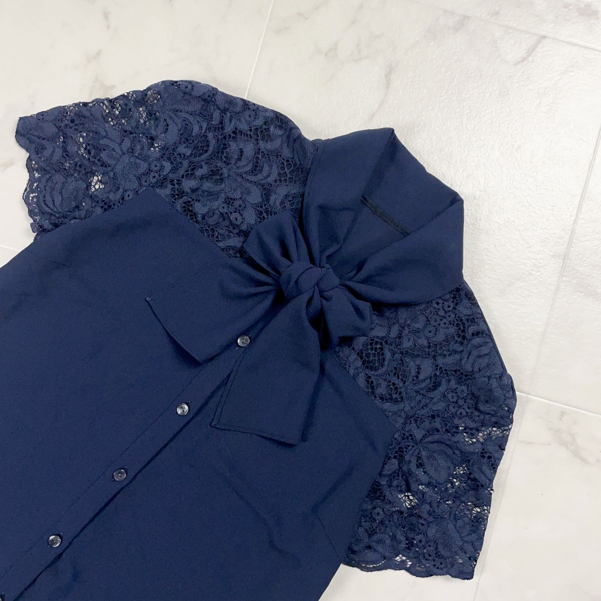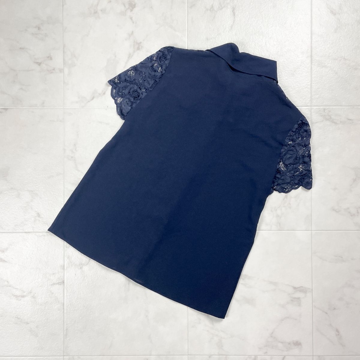 ANAYI アナイ レース切替ボウタイブラウス 半袖シャツ 薄手 リボン レディース ネイビー 紺 サイズ38*HD273