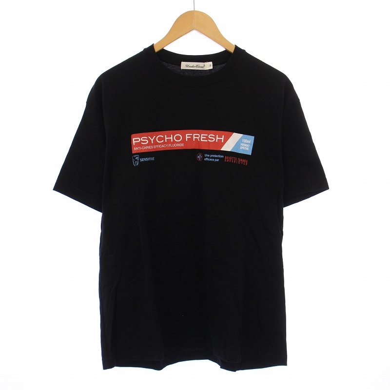 アンダーカバー UNDERCOVER 24SS PSYCHO Tシャツ 半袖 クルーネック ロゴ プリント ストレッチ 2 黒 ブラック
