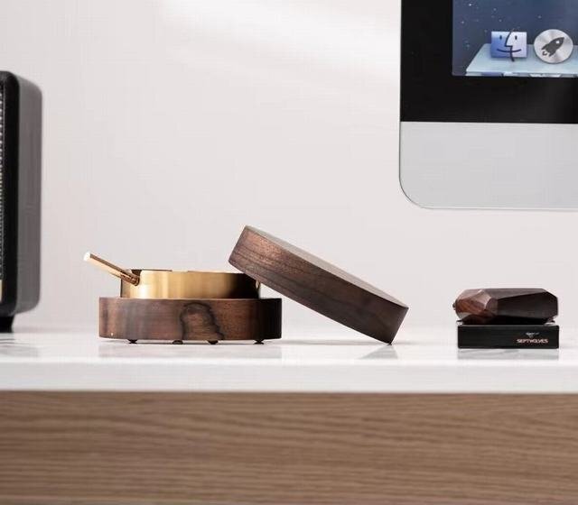 木製×ステンレスの融合 洗練されたモダンスタイリッシュデザイン。シンプルなのでどんなインテリアにも馴染みます。 手触り感の良い天然素材。木目が優しく耐久性に優れたクルミ材採用。インテリアに温かみをプラスします。 耐火性、耐水性に優れたステンレス。外して丸洗い可。 吸殻を捨てる時に逆さにしても磁石でステンレスは外れません。洗うとき時以外はずす必要がありません。 フタ付なので、防臭、清潔感ある空間をキープ。 滑り止め付きなので卓上で滑らない。タバコが落ちにくいU字溝付。 アイコス、グローにもオススメ。開口部が広い設計なので吸殻を捨てやすいです。 和洋どちらのインテリアにもマッチ。レストラン、ホテル、バー、カフェ等様々なシーンで大活躍。 愛煙家へのギフトにもオススメ。