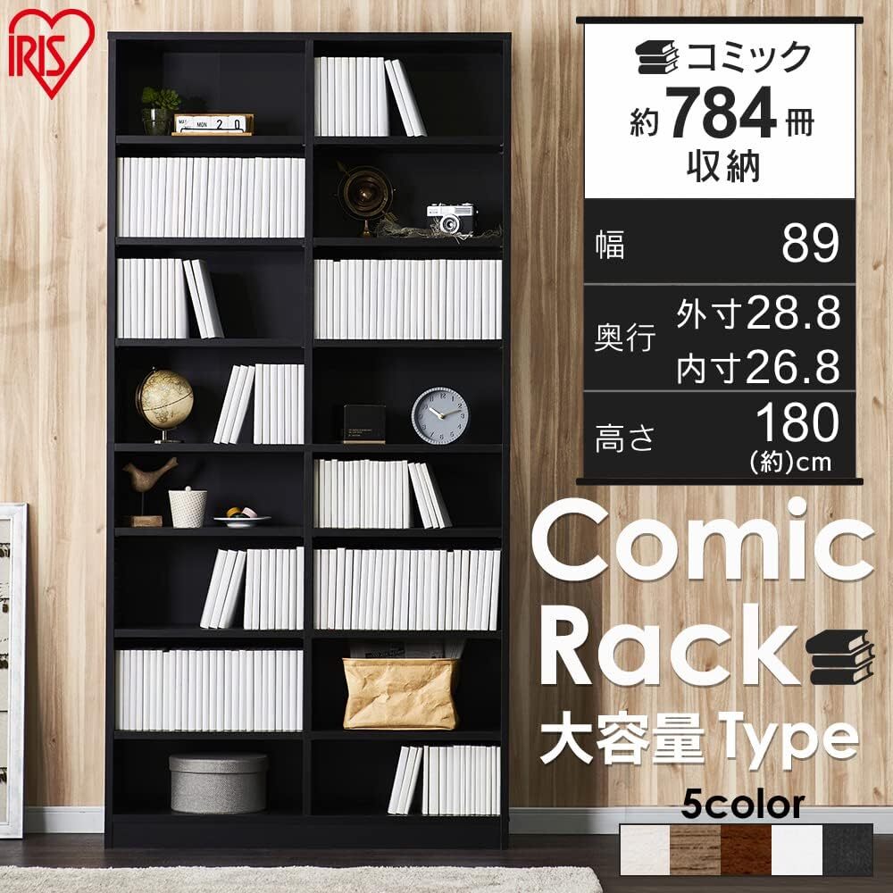 ブラック色 アイリスオーヤマ 本棚 幅89×奥行28.8×高さ180.0㎝ 8段 棚板可動 オープンラック 大容量 組立品