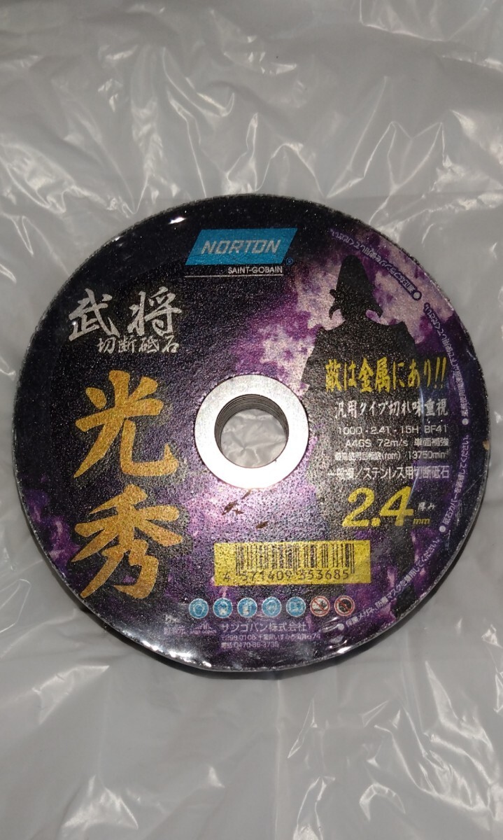 NORTON(ノートン)ブランドの「武将 光秀」シリーズの切断砥石です。この製品に関する情報は以下の通りです。