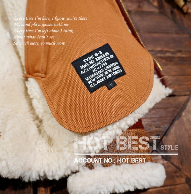 1930年代のアメリカ空軍USAFの象徴的なフライトジャケット、B-3フライトジャケットの復刻版。