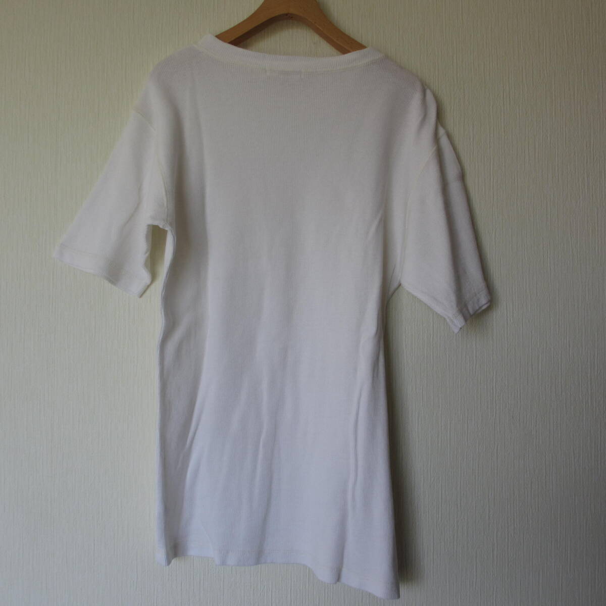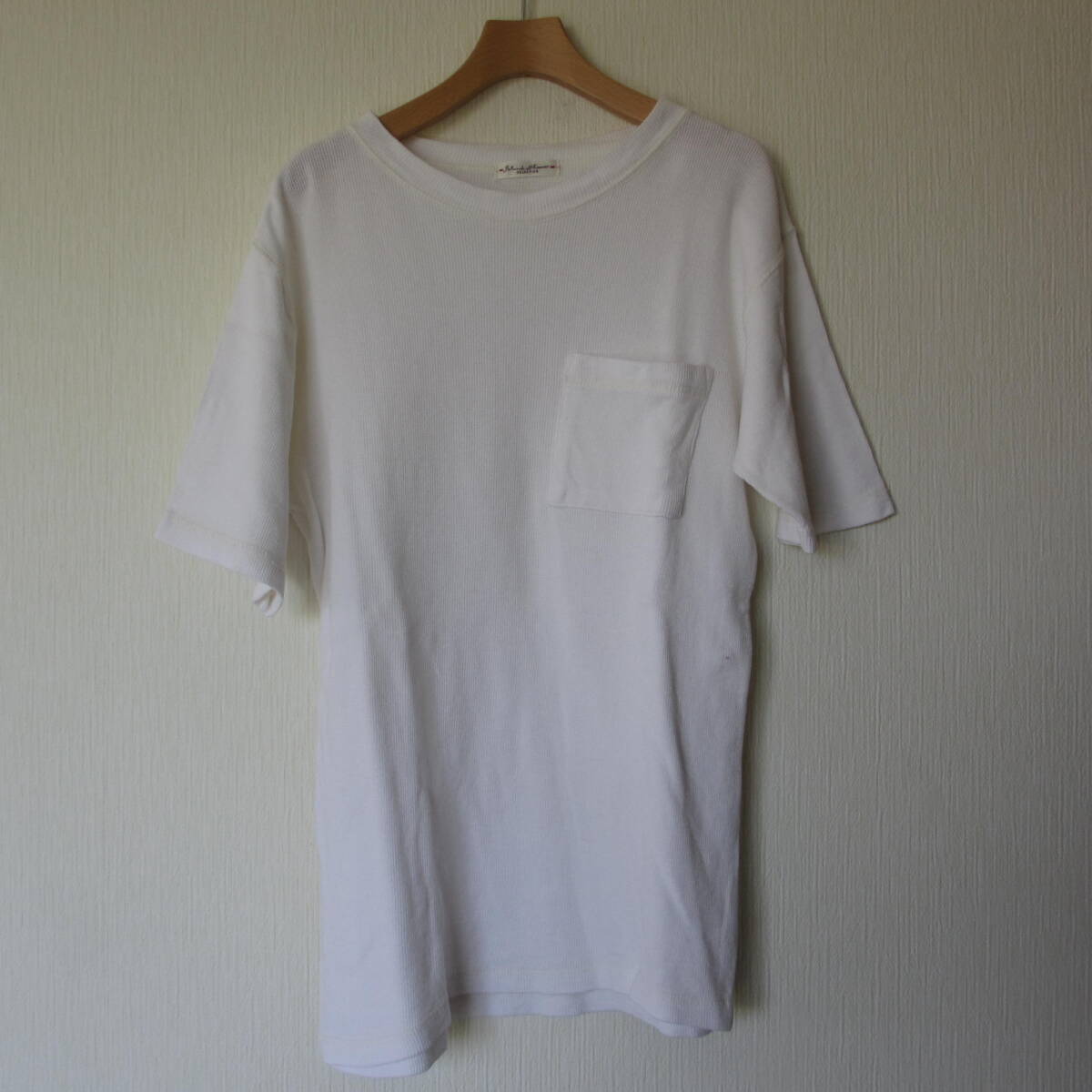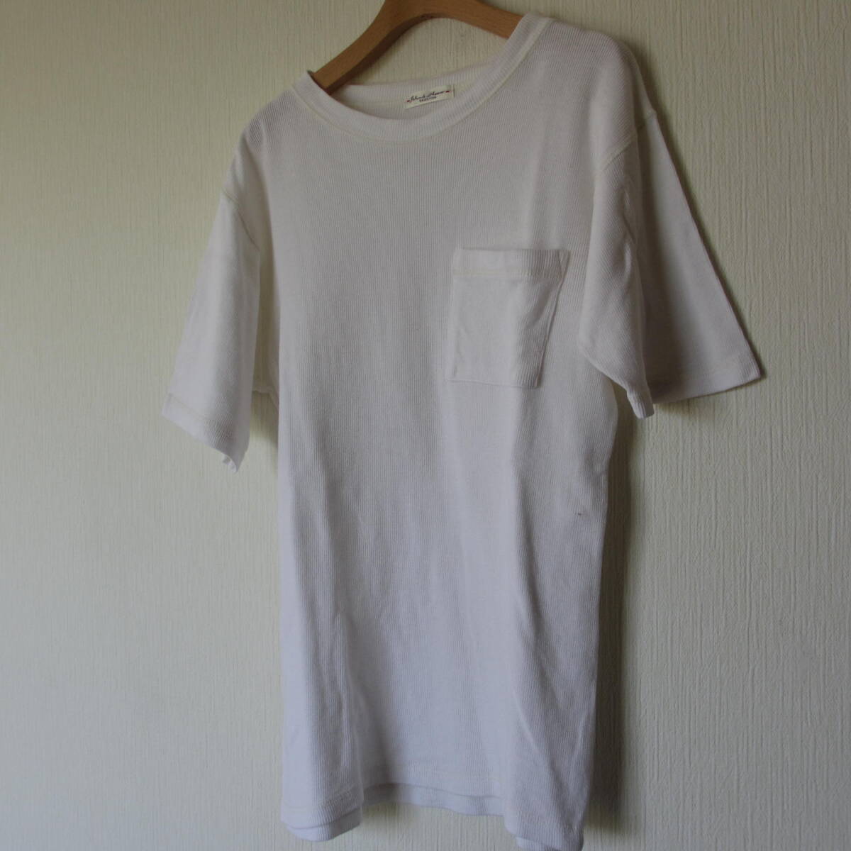 未使用・丸首半袖・綿麻混合シャツ・メンズファッション・紳士用品・左胸元ポッケット付き・(M)
