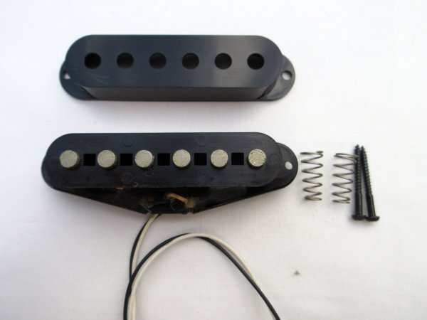 艶黒カバーにプラ製ボビン、フラットポールピース、直付け仕様という日本製ギターではよく見るシングルコイルです。