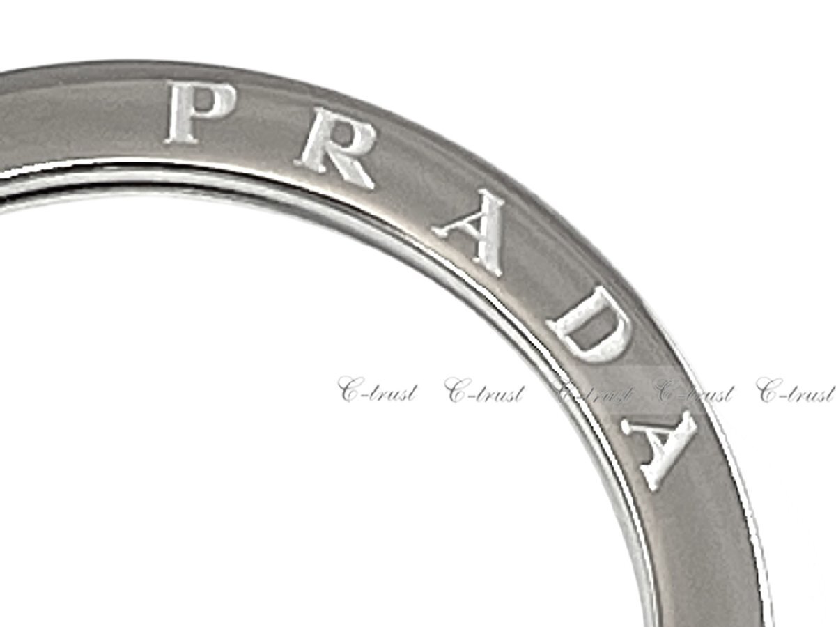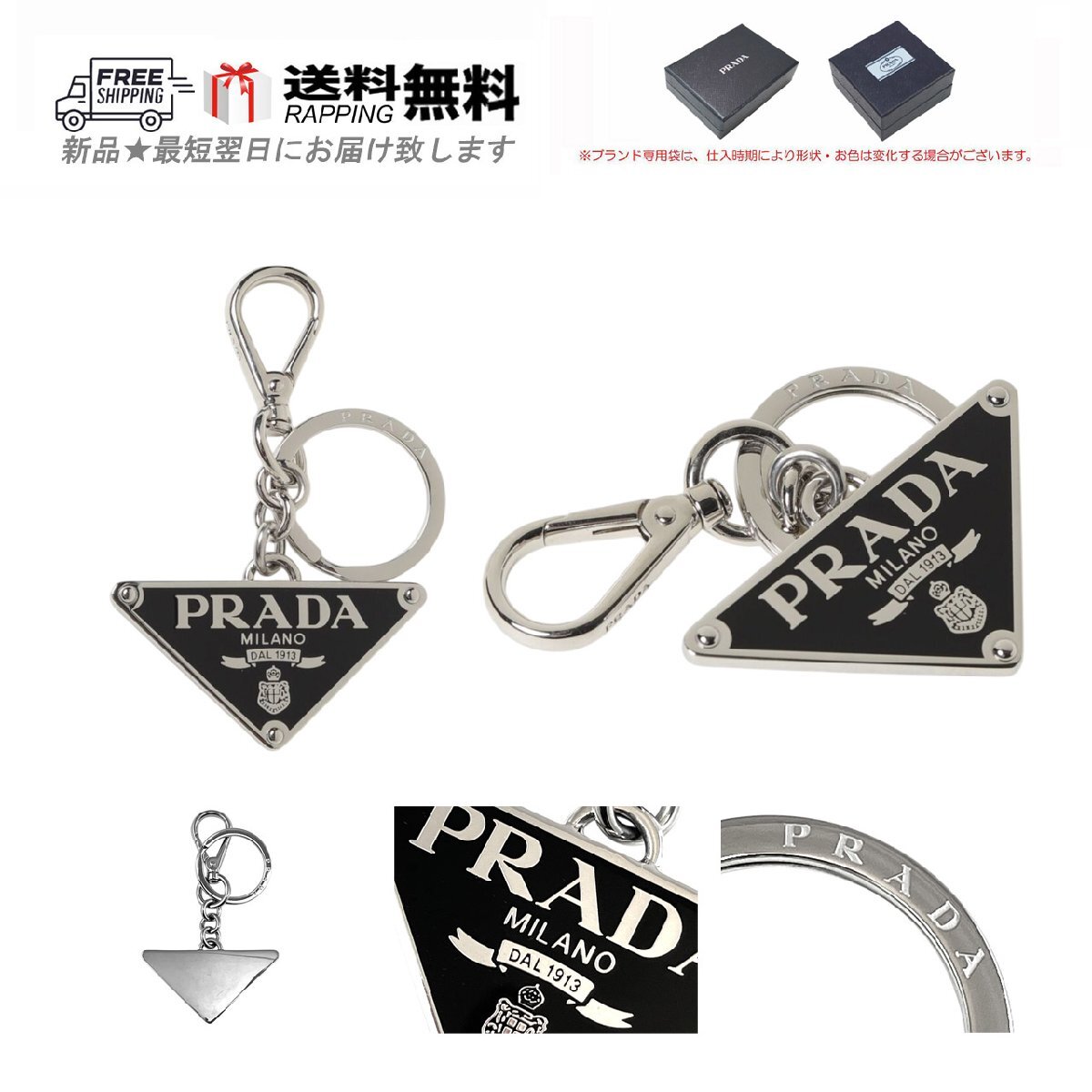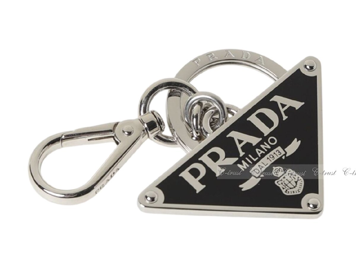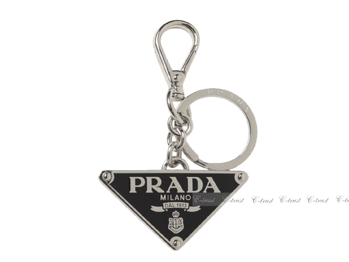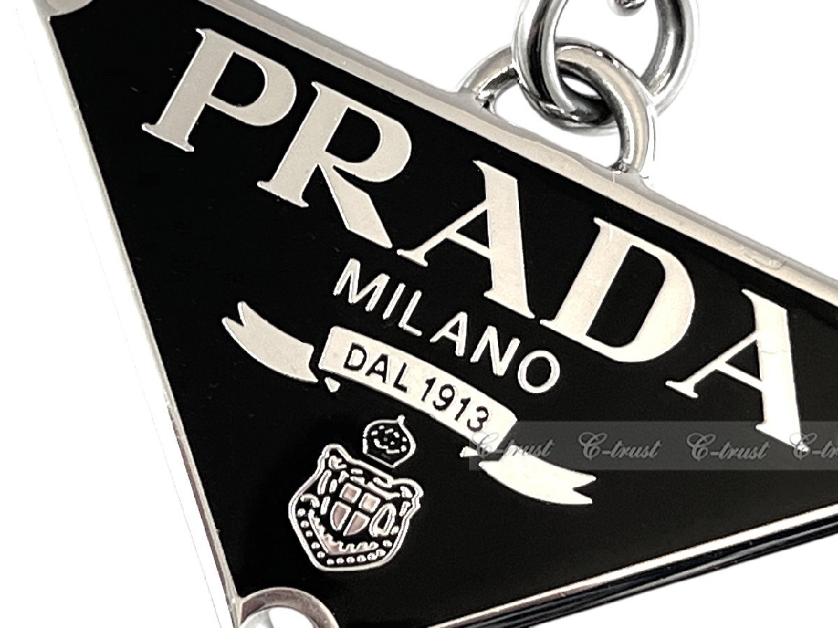 L766-BK.. PRADA プラダ キーリング キーホルダー メタル トライアングル バッグ チャーム プレート 三角 ロゴ イタリア製 ★ ブラック