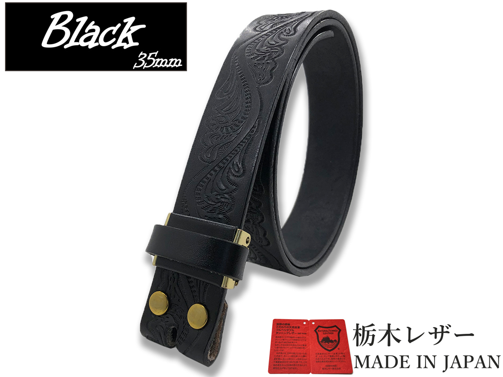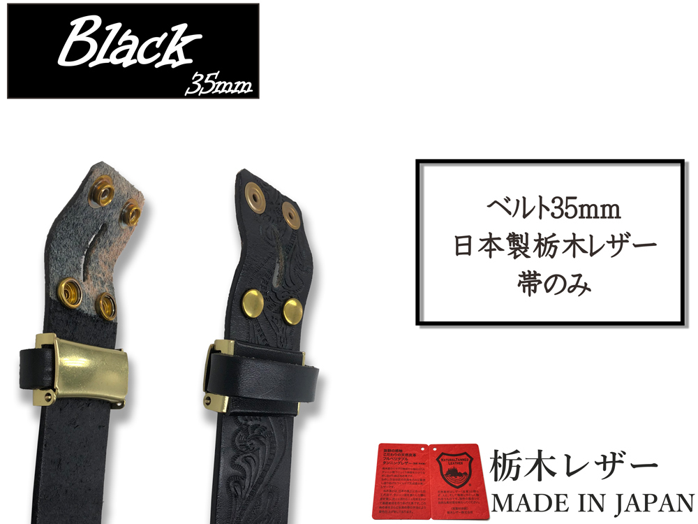 新品 栃木レザー カジュアルベルト Lサイズ メンズ クラフト 帯のみ 本革 交換用 取り換え 牛革 35mm 黒 ブラック 金ホック W050BKG-L