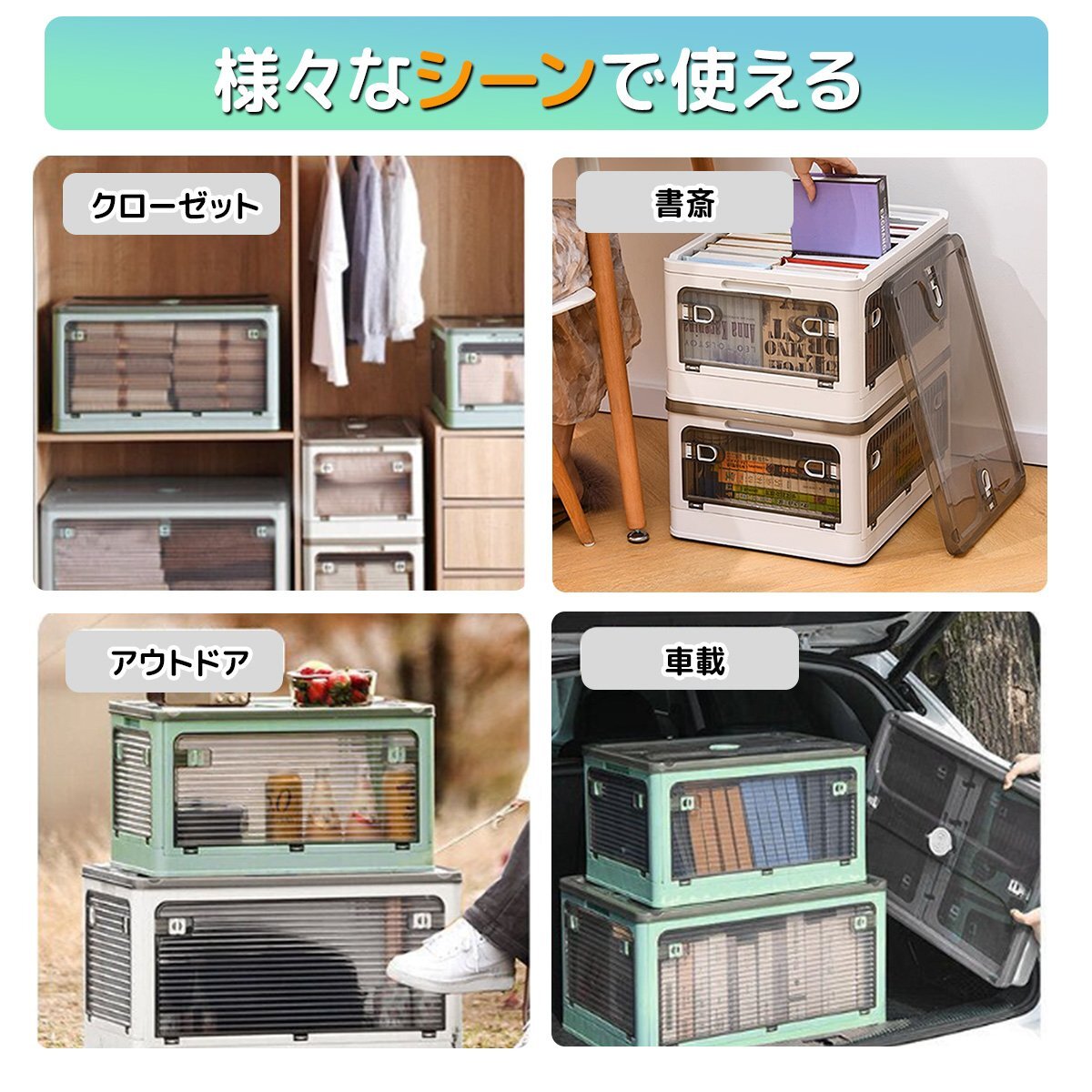 【送料無料】収納ボックス 36L 折りたたみ 収納ケース 蓋付き キャスター付き 透明 積み重ね 5面開き おもちゃ 雑貨 書類 5色選択