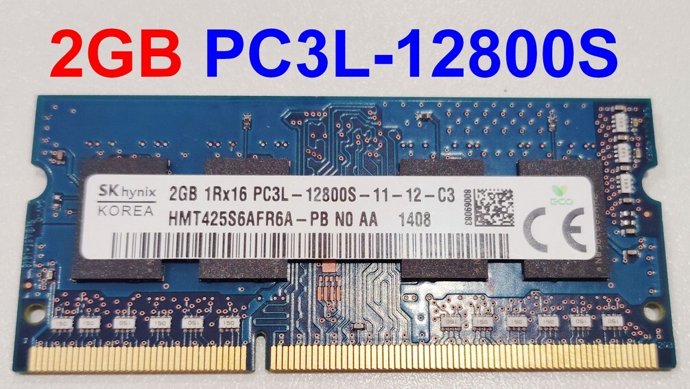 ノートPCメモリ 2GB DDR3L-1600 / PC3L-12800S 動作品 SKhynix製 低電圧対応 SO-DIMM