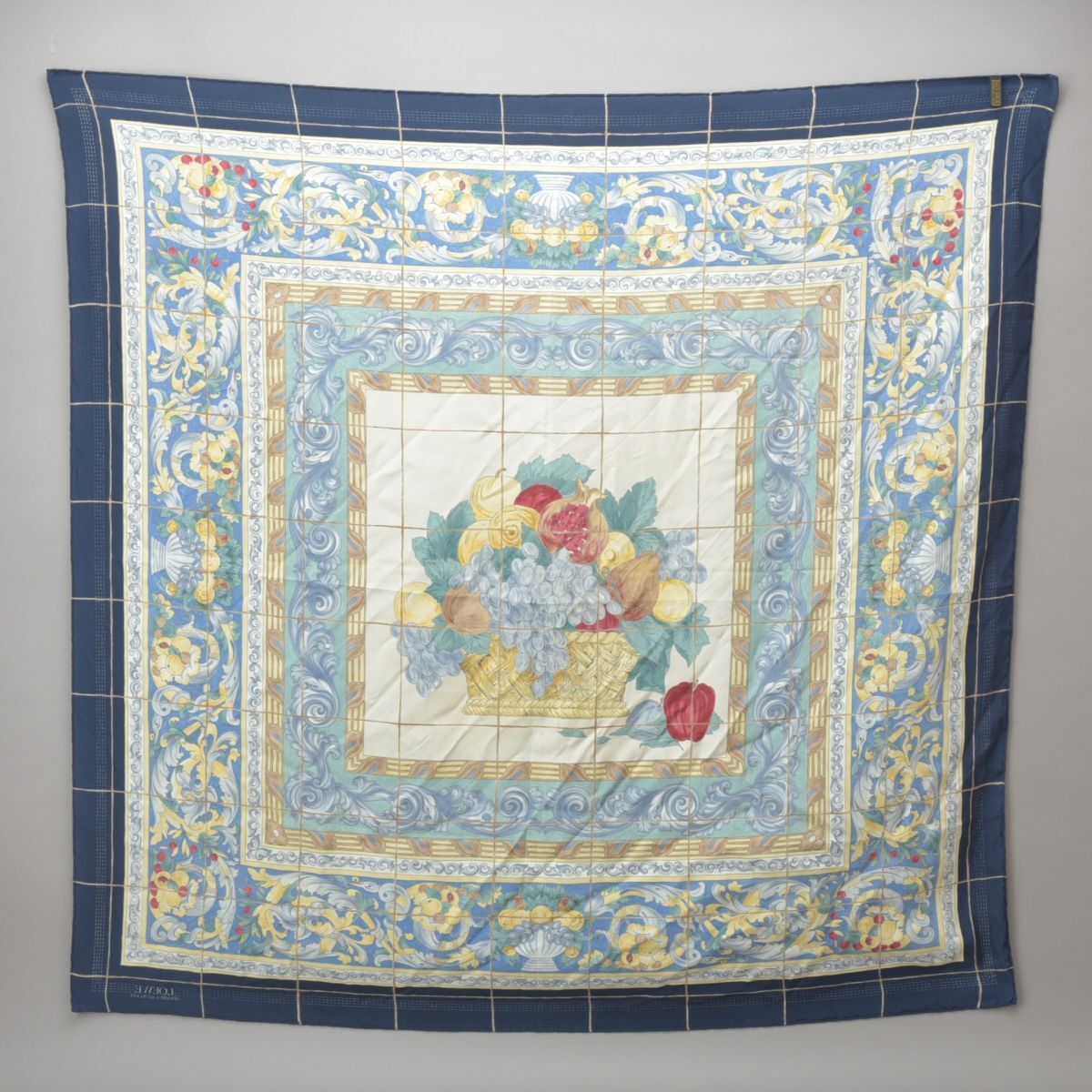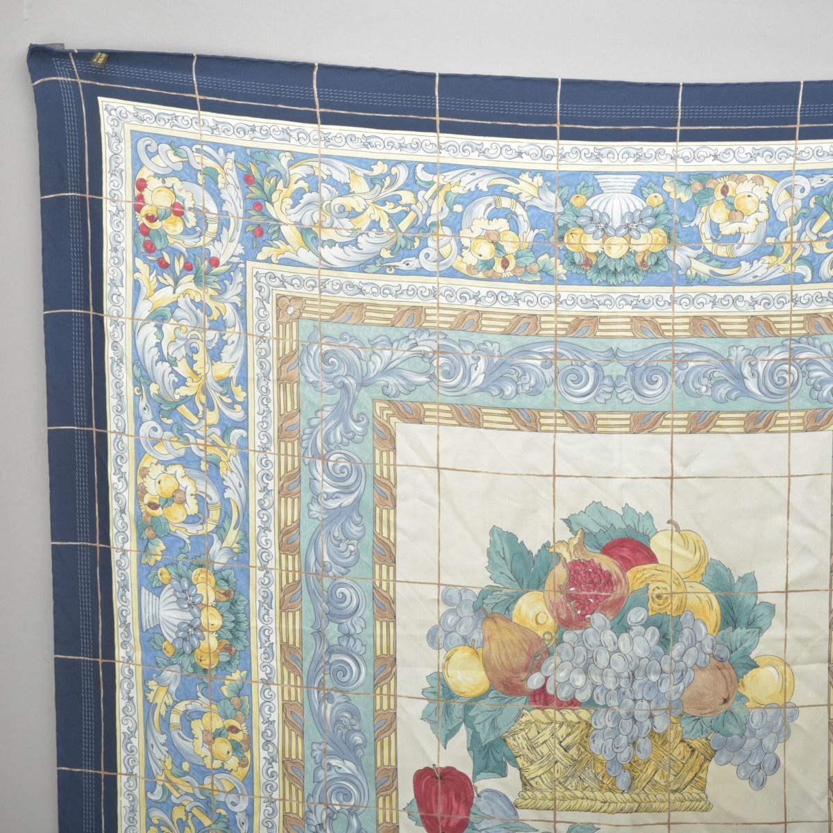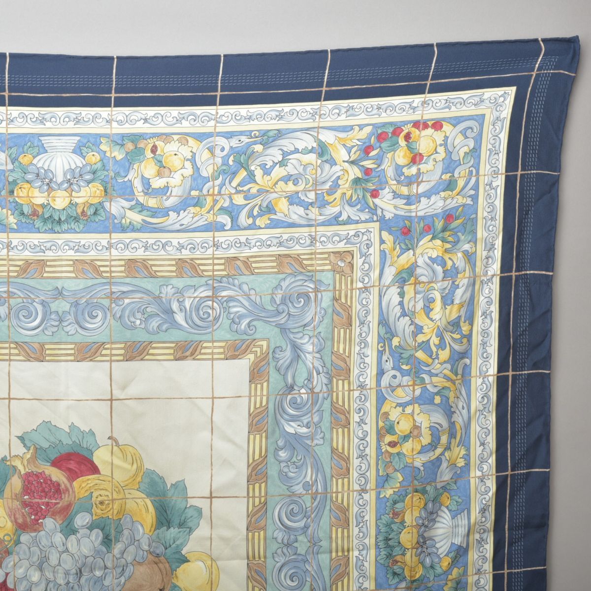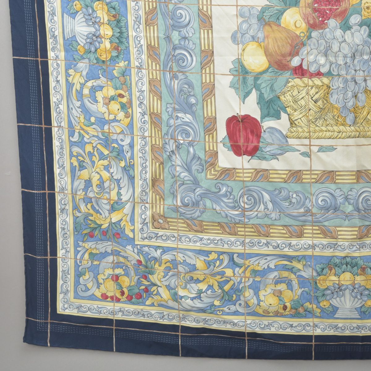 極美品 ロエベ LOEWE スカーフ セビリアの陶器 86×86 ブルー フルーツ CERAMICA SEVILLANA ストール ショール シルク #N※0724-12