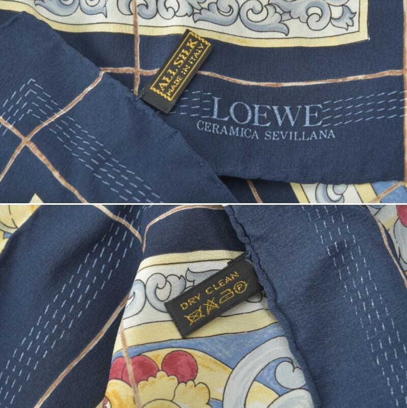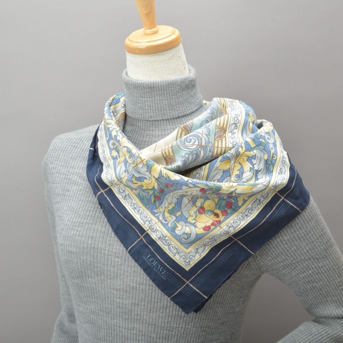 極美品 ロエベ LOEWE スカーフ セビリアの陶器 86×86 ブルー