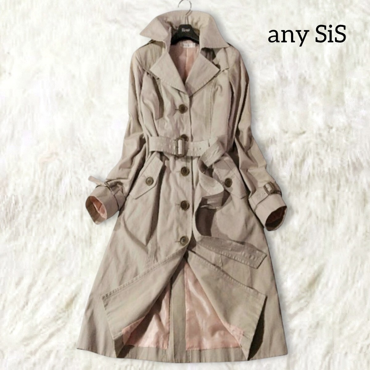 裏地がピンクで見えない箇所も可愛いトレンチコートです♪