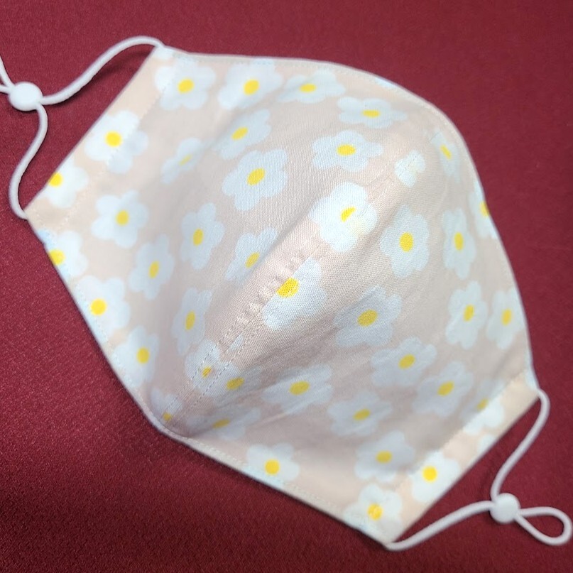 【大人向け】 北欧風 花柄 ピンク ハンドメイド 立体マスク マスクカバー 縦15×横11.5 アジャスター ゴム紐