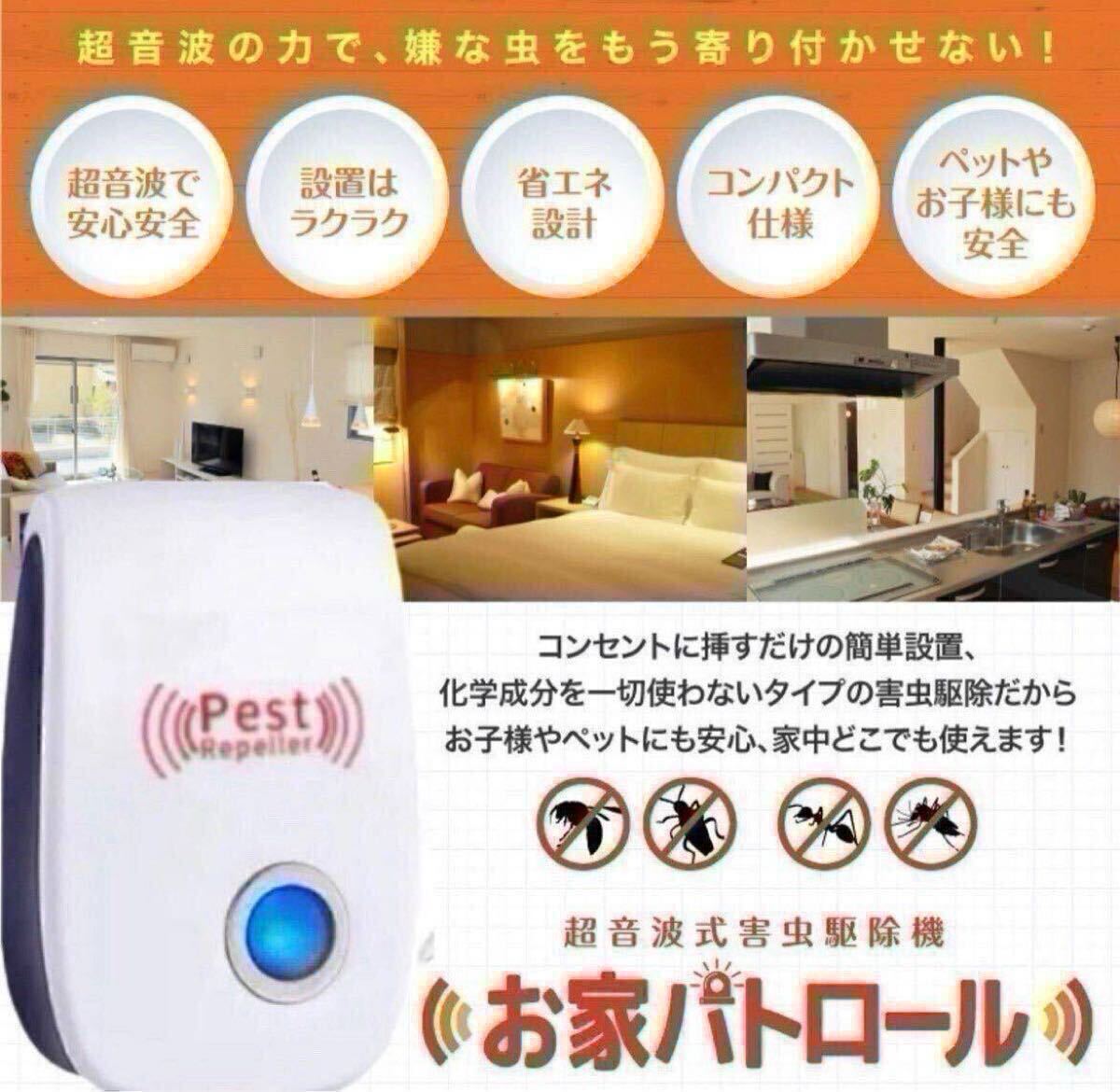 日本語の取扱説明書付き。薬品・煙・スプレーを使用せず、コンセントに差すだけでOK。電池や充電は不要です。