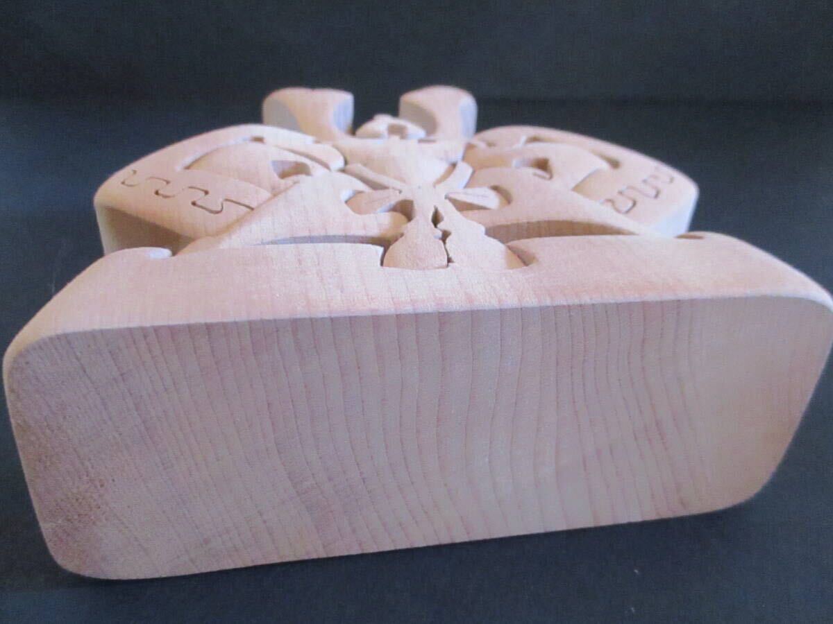 | ご覧いただき、ありがとうございます。 【ほぼ未使用】 千葉圭介 手作り木製パズル クラフトバードウッド 立体式パズル かぶと 兜(小) 知育玩具の出品です。 TVなどにも取り上げられており、展示会などもされている人気作家、千葉圭介氏の作品、木製パズルです。 北海道産・桂材で、ひとつひとつのパーツを丹念に削り丸みをつけて作られた立体式パズルです。 こちらは兜(小)のパズルになります。 定価6,600円(CRAFT WOOD BIRDホームページ製品案内より) 大変お買い得ですよ☆ お探しの方、お好きな方、この機会にぜひいかがでしょうか☆ ※画像に写るものが全てになります。 【サイズ】 組み立て完成時のサイズ:横幅 10.5cm 奥行き 約4cm 高さ 11cm (おおよそのサイズです。素人採寸ですので、多少の誤差はお許しください。) 【状態】 ほぼ未使用品です。(一度組み立てたくらいです。) 自宅で、箱に入った状態で保管しておりました。 ※画像に写るものが全てになります。 ほこり汚れ、木の変色などがある場合がございます。 全て現状でのお渡しとなりますので、ご納得のうえでのご購入をよろしくお願い致します ほぼ未使用品ですが一度人の手に渡ったものになりますので、完品をお求めの方、 細かな点が気になる方はご入札をお控えくださいませ。 専用の包みや箱には汚れ、破れ等の経年ダメージがございますので、あくまでも梱包用とお考えくださいませ。 簡易包装、定形外郵便・規格外料金(250g以内450円)での発送とさせていただきます。 詳細は写真をご覧の上ご判断ください。 画像に写るグリーンの球体(直径11cm)は商品には含まれません。 最終日のご質問には回答が間に合わない場合もございます。ご理解くださいませ。 同時期に千葉圭介氏の様々な立体式パズルを出品しております。ぜひそちらもご覧くださいませ。同梱発送も可能です。(発送方法、送料は変更となる場合がございます。ご了承くださいませ。 | |||