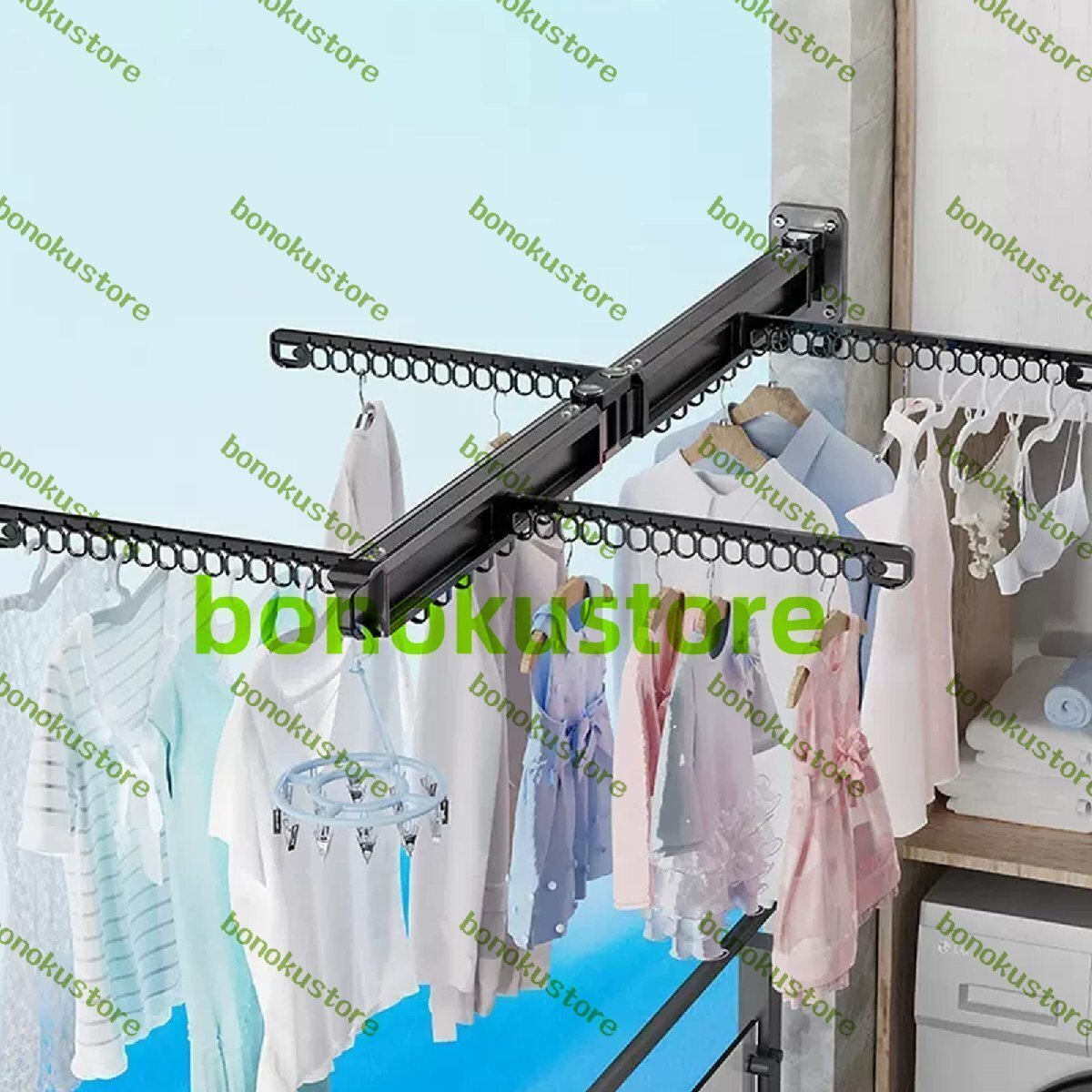 室内用衣類乾燥機 折りたたみ式壁掛け衣類乾燥ラック アルミ合金製乾燥ラック 折りたたみ式衣類乾燥ラック 省スペース衣類ハンガーラック ランドリールーム用 ブラック 伸縮式衣類乾燥機