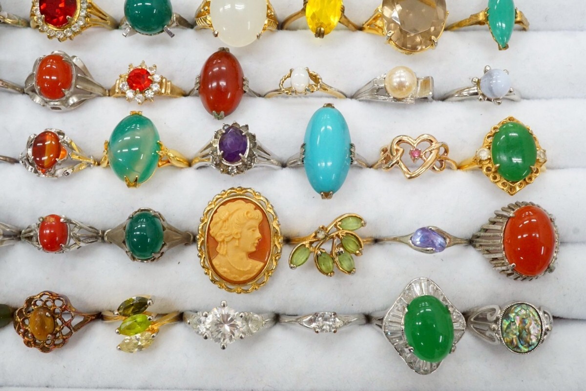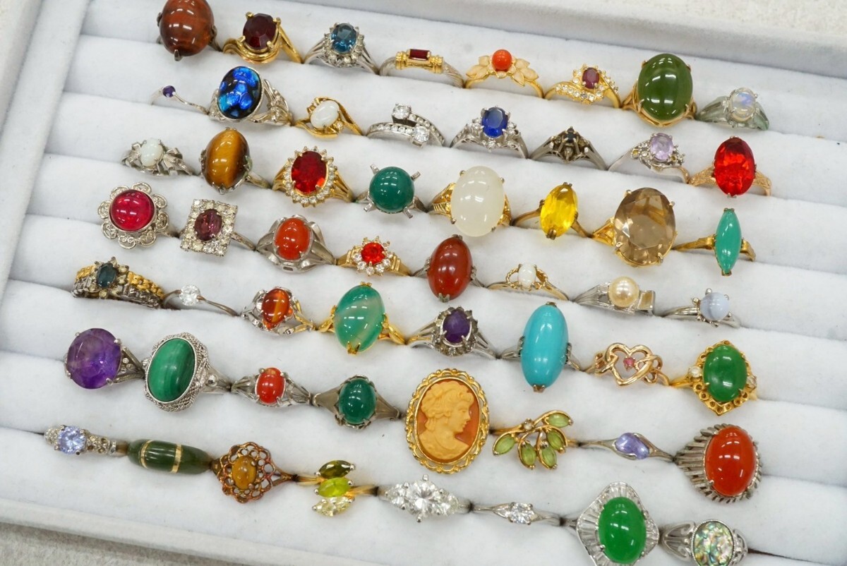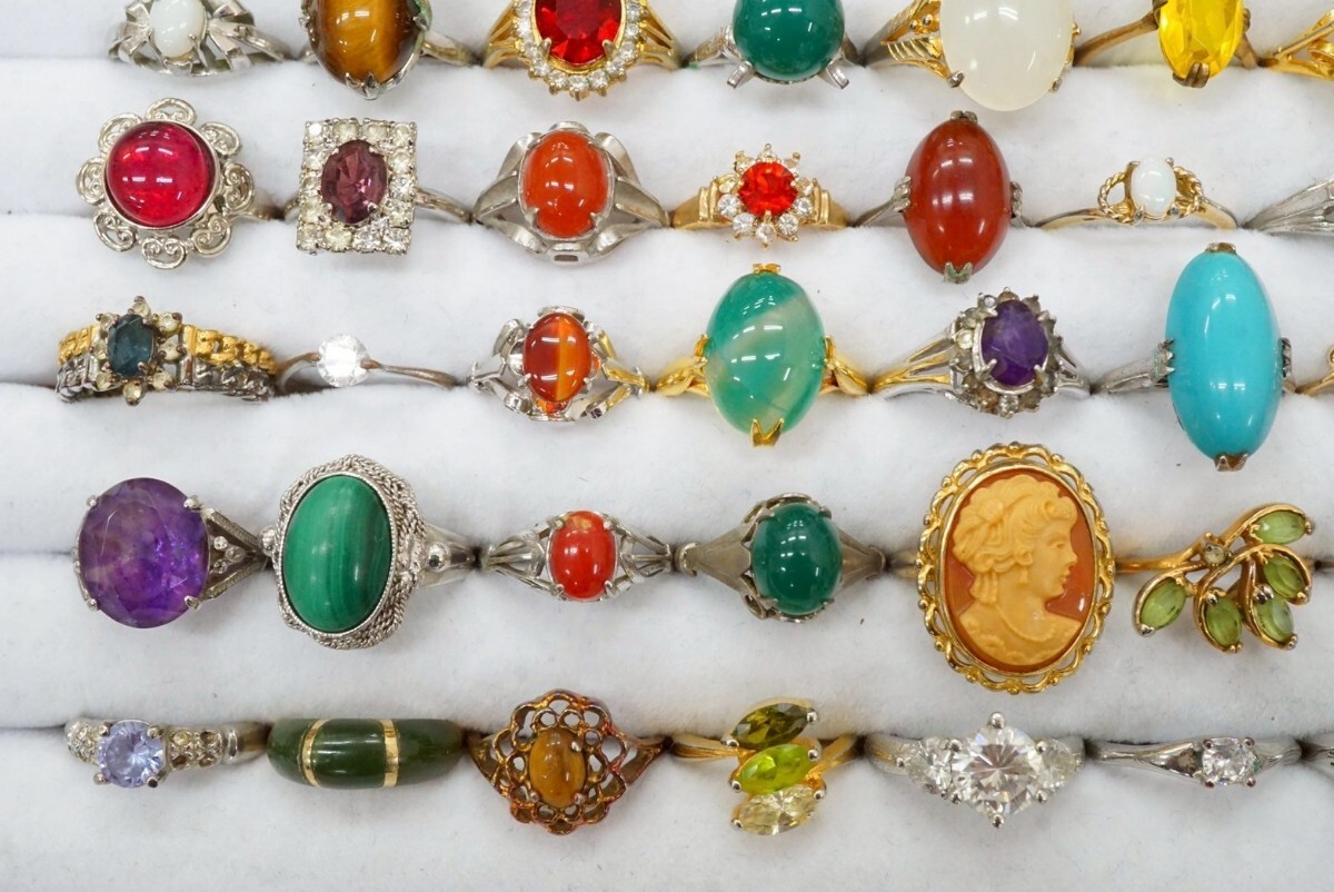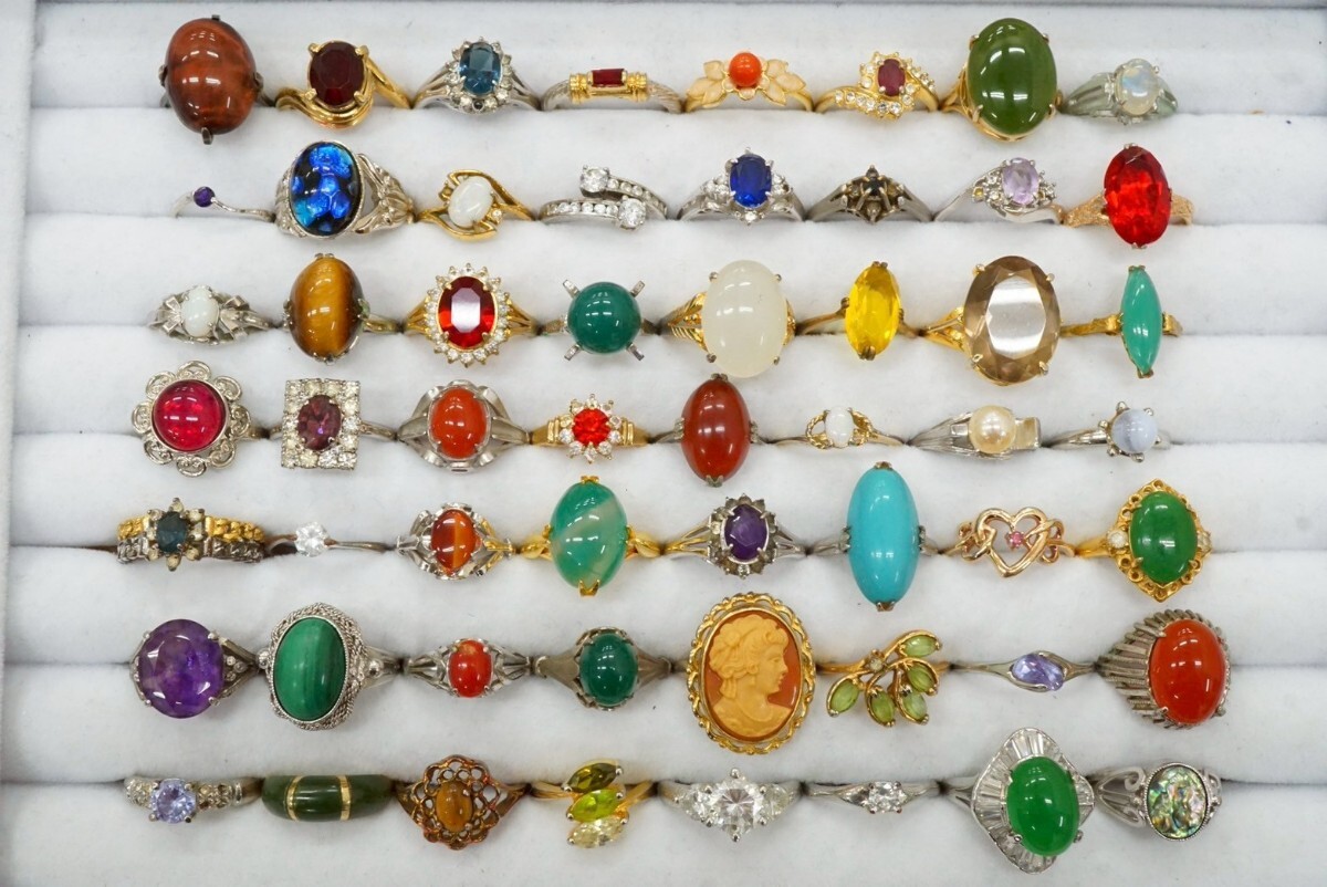 D748 ジャンク品 天然石など ヴィンテージ リング 指輪 56点セット アクセサリー カラーストーン 大量 まとめて おまとめ まとめ売り