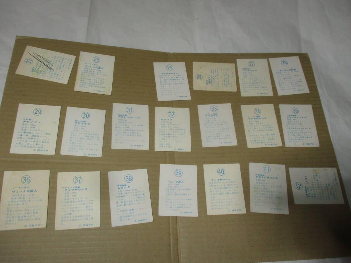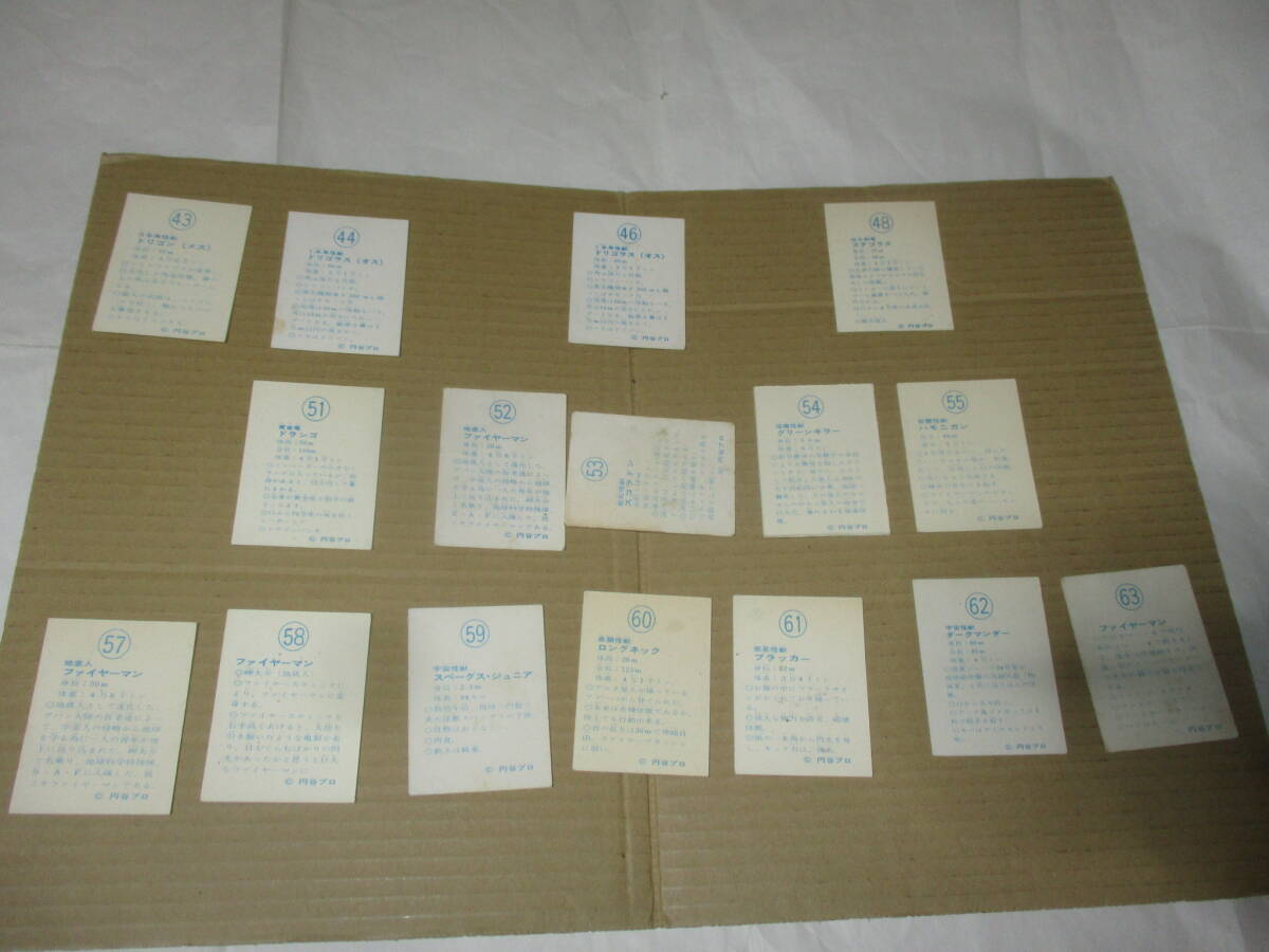 商品説明 | 全64種のうち12,25,45,47,49,50,56がありません。 アルバムはしわがあります・ カードは綺麗なものから汚れやしわのあるものまで状態は様々です。 横向きのものが傷みが多いです。 自分の手持ちのものがあと1種でそろうのですが全然見つからずいやになります。 絵柄から見て番組終了後の発売のようですがあまり売れなかったのかもしれません。 発送方法はレターパックのみです。大きさによってはユウパック着払いです。 定形外郵便などほかの方法は対応できません。 落札決定後要望があった場合は落札者都合による取り消し処置を執りますので ご了承願います。 |
