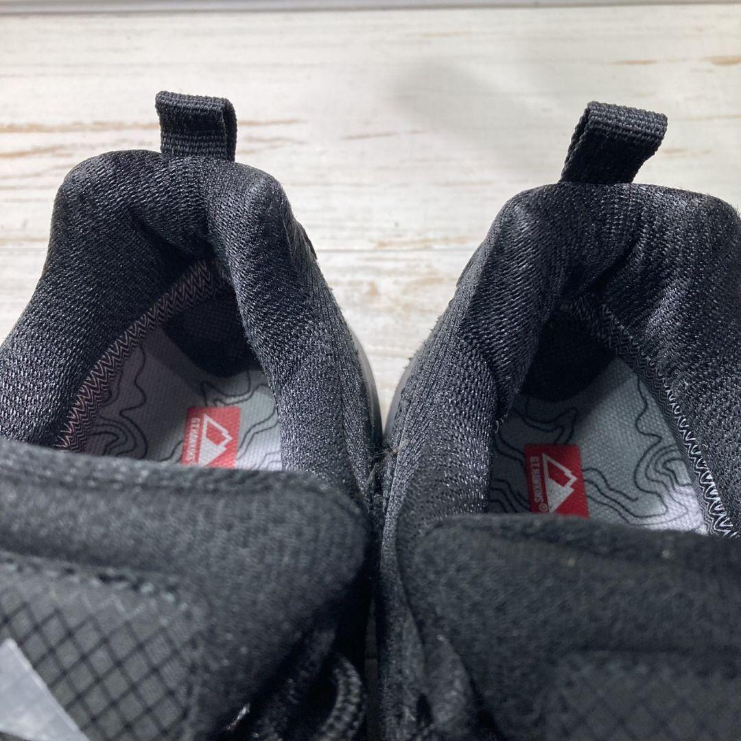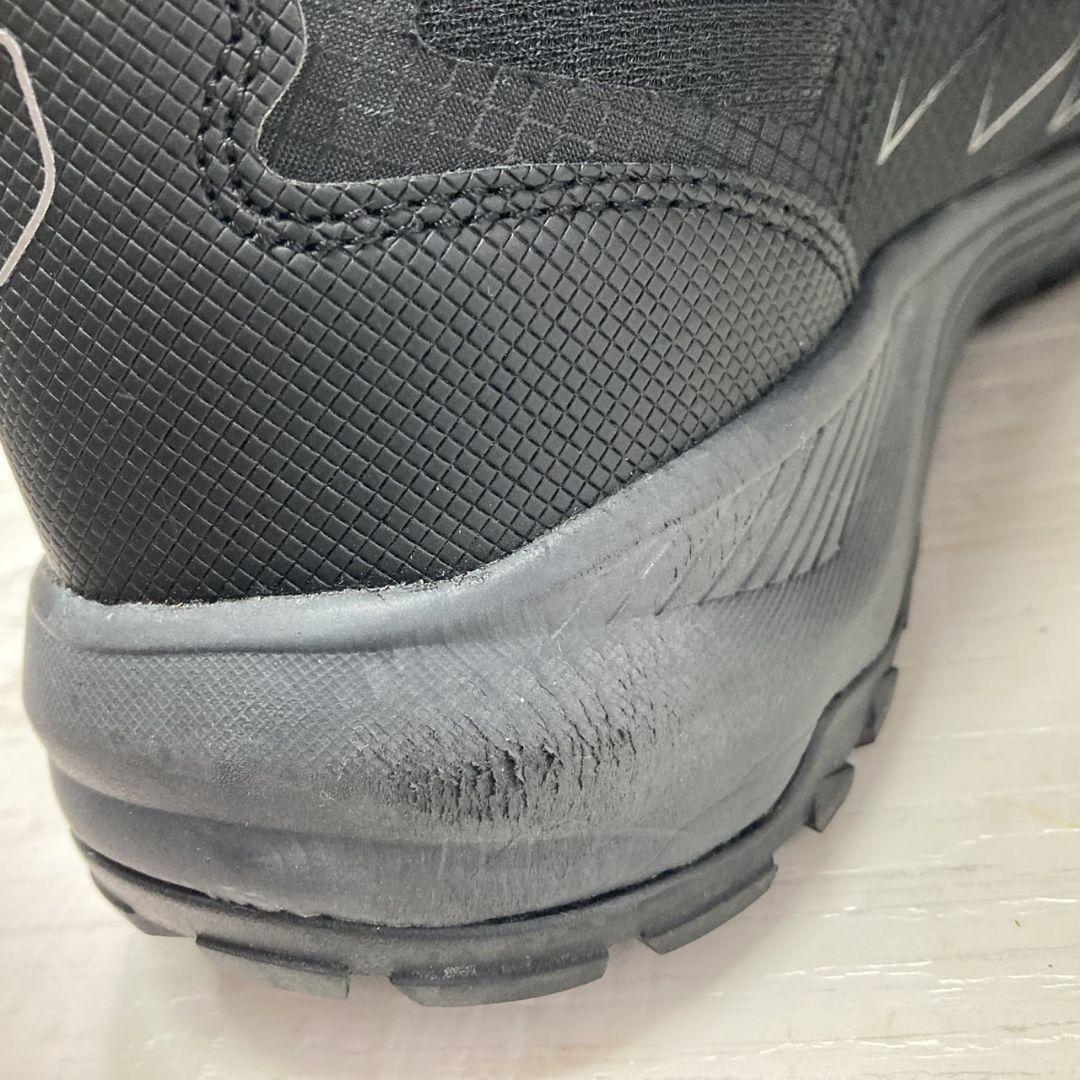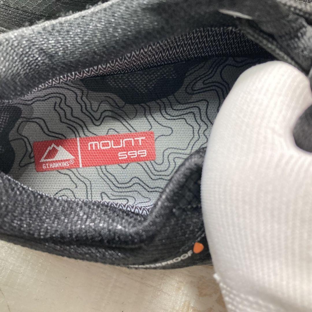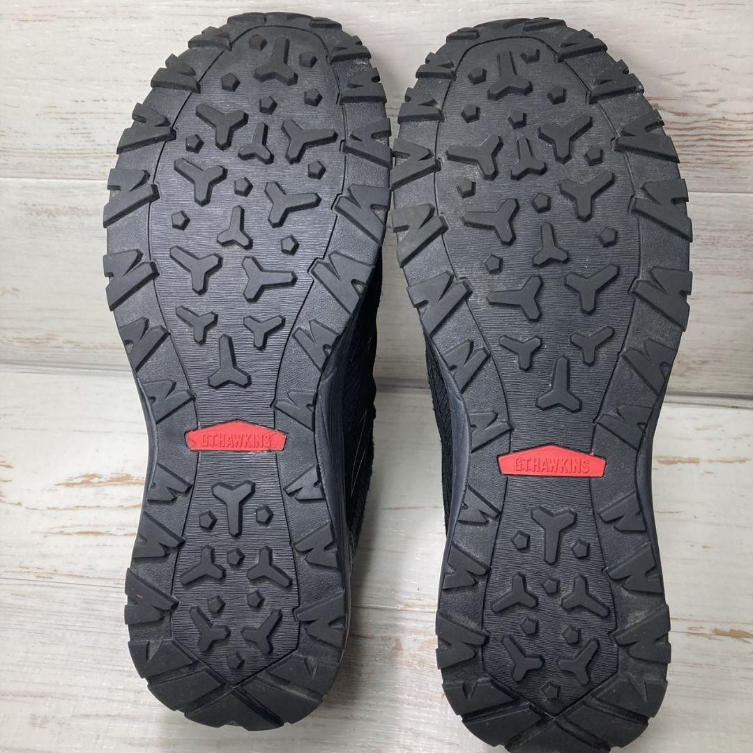 GTホーキンスのブラックスニーカーです。防水仕様「WATERPROOF」や「ANTI H2O」表記があり、アウトドアや雨の日でも安心して履ける機能的な一足です。シンプルなデザインながら、しっかりとしたグリップ力のあるソールで安定感があり、長時間の歩行やアクティブシーンにもおすすめです。